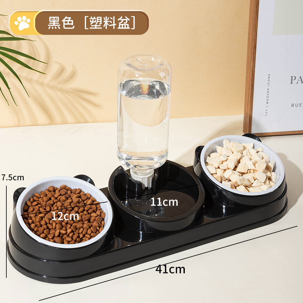 Cat bowl, slanted mouth, dog bowl, cat food bowl, double bowl, stainless steel automatic water refilling, pet bowl, two-in-one drinking and feeding device