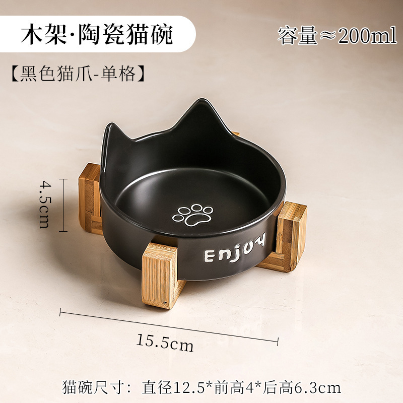 Cat ears, black cat claws, fish bones, double bowls + double-grid wooden frame