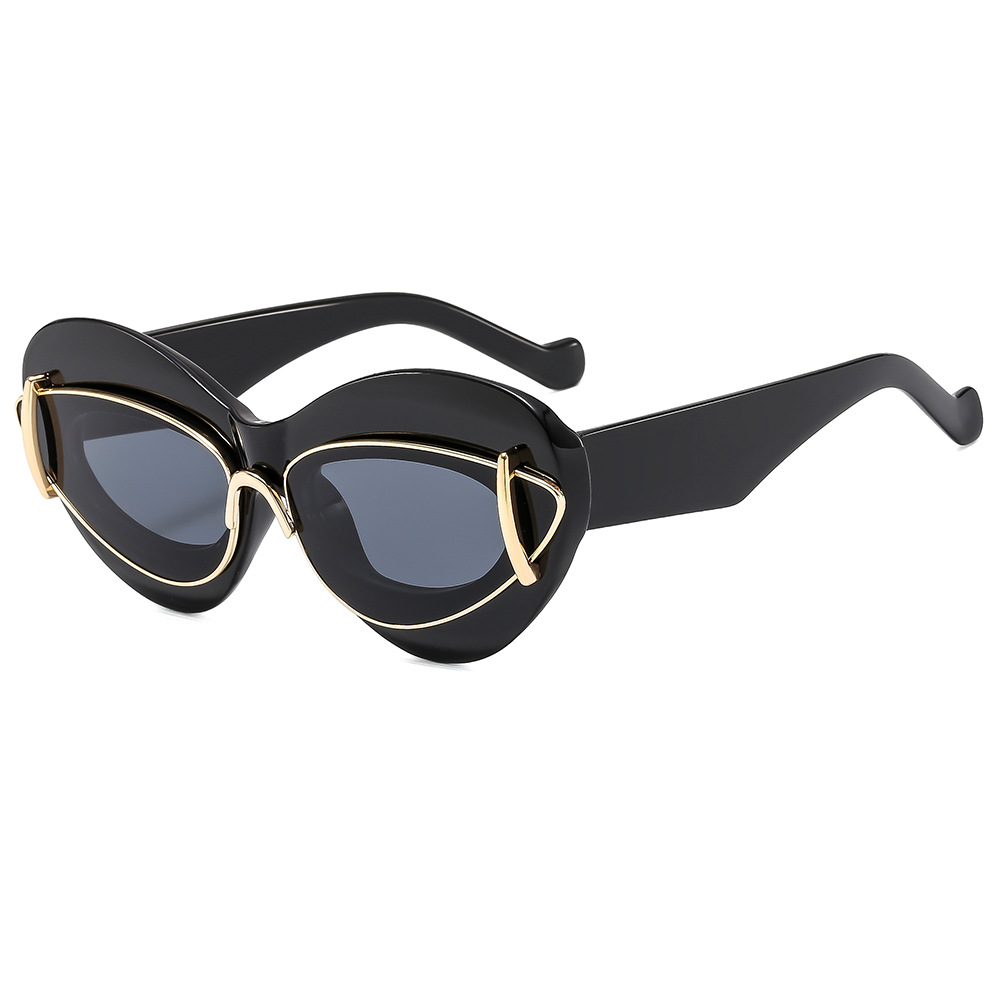 Cat-eye double-frame sunglasses for women, European and American fashion trends, hip-hop sunglasses, Instagram influencers, and exaggerated personality sunglasses
