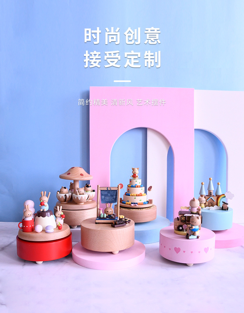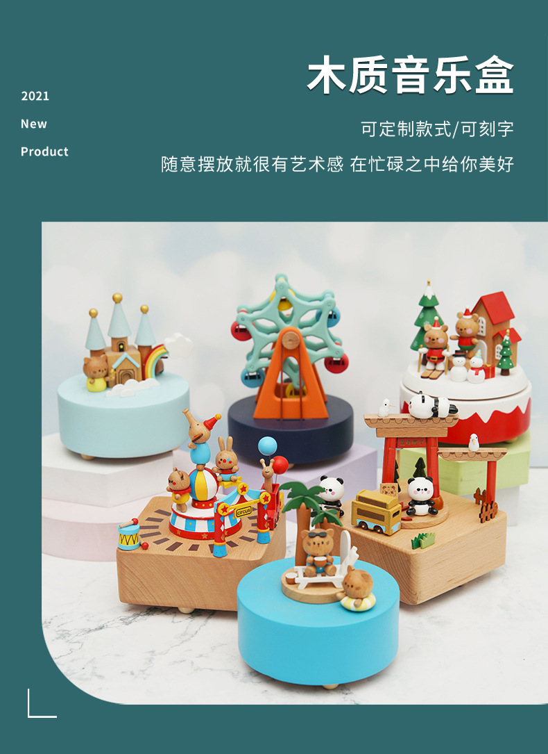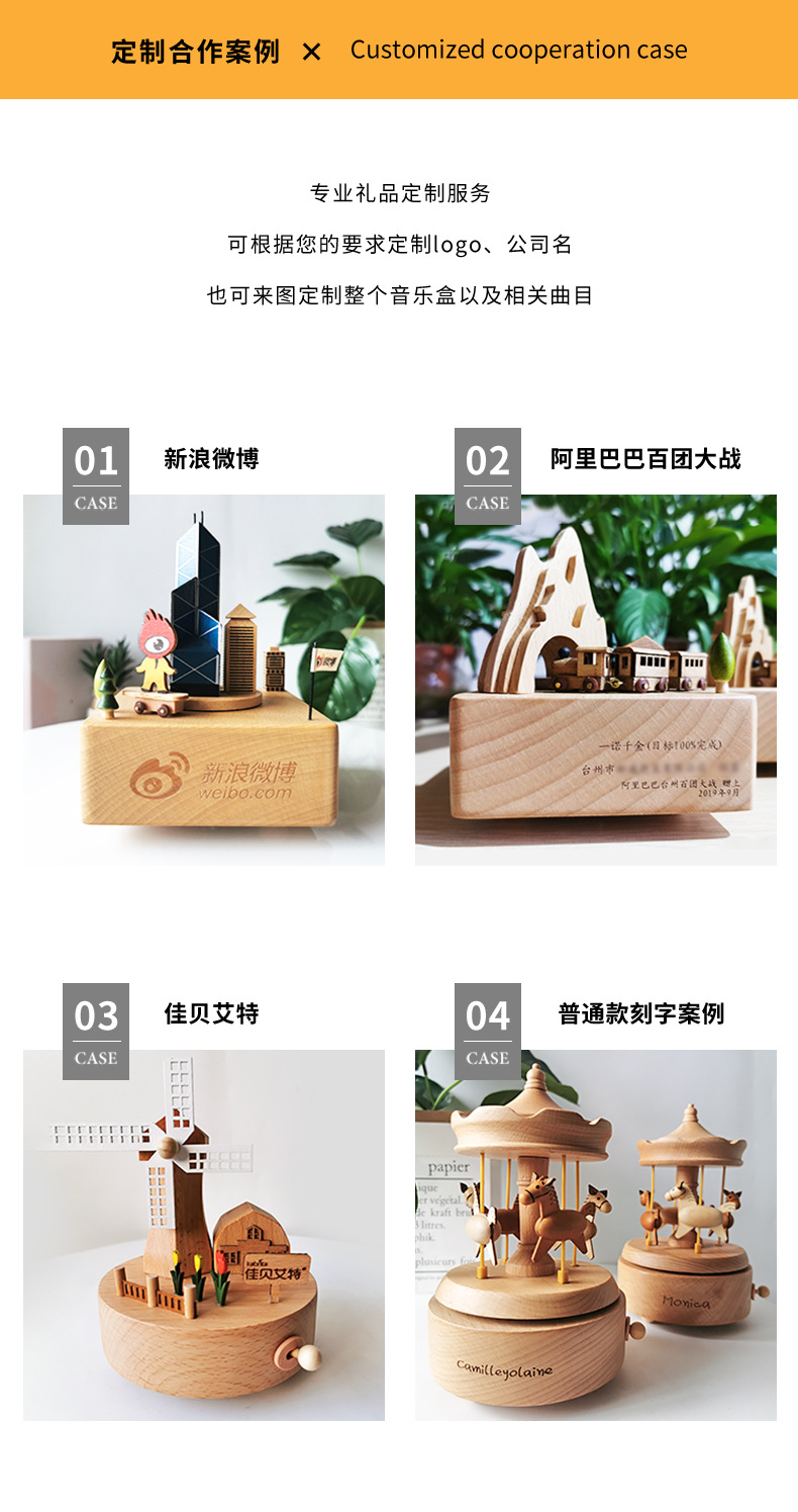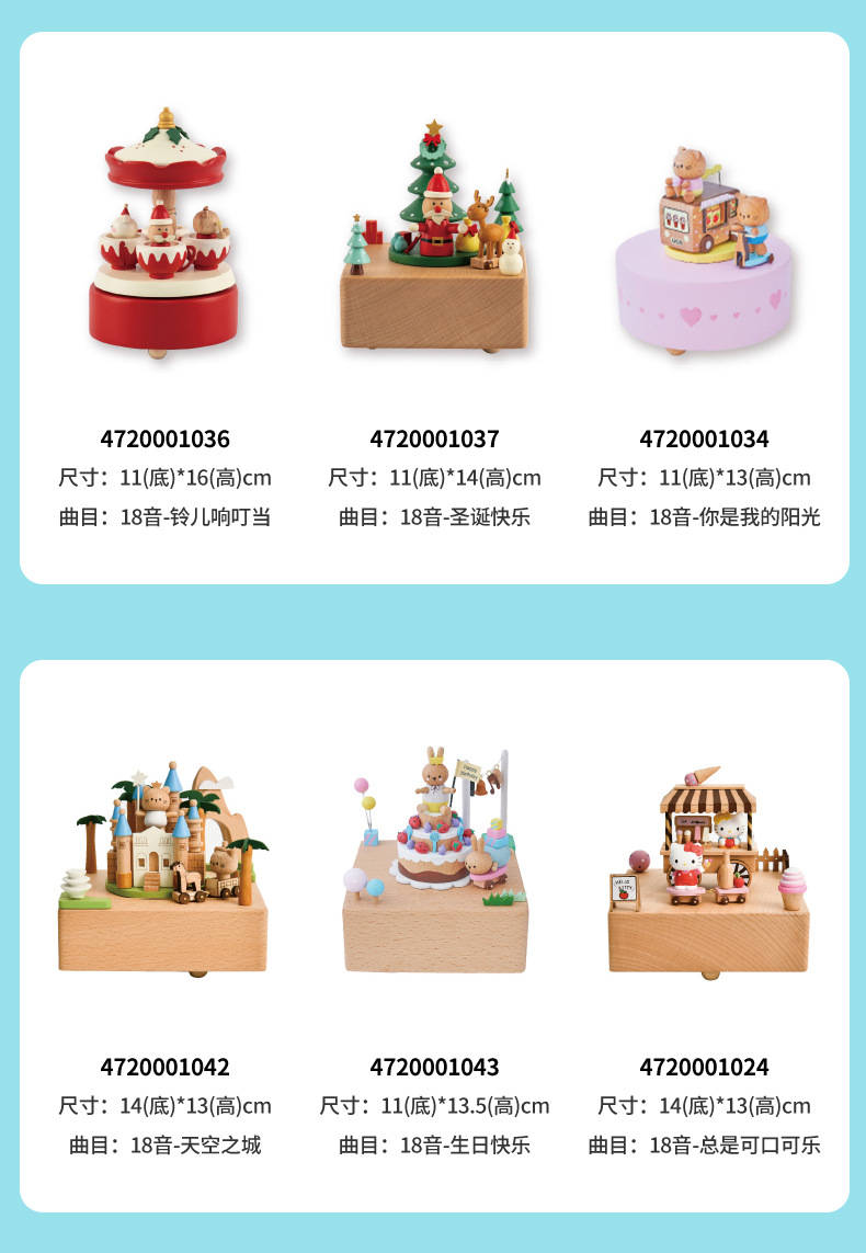 Cat's Sky City Beech wood music box Birthday gift, Christmas Festival engraved music box, music bell