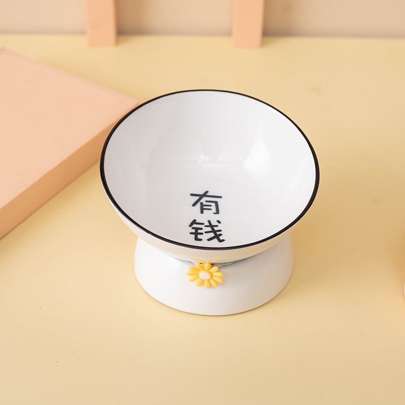 Ceramic cat and dog bowls, pet bowls, creative text, slanted mouth, high feet to protect the cervical vertebrae and prevent black chins, cat and dog food bowls