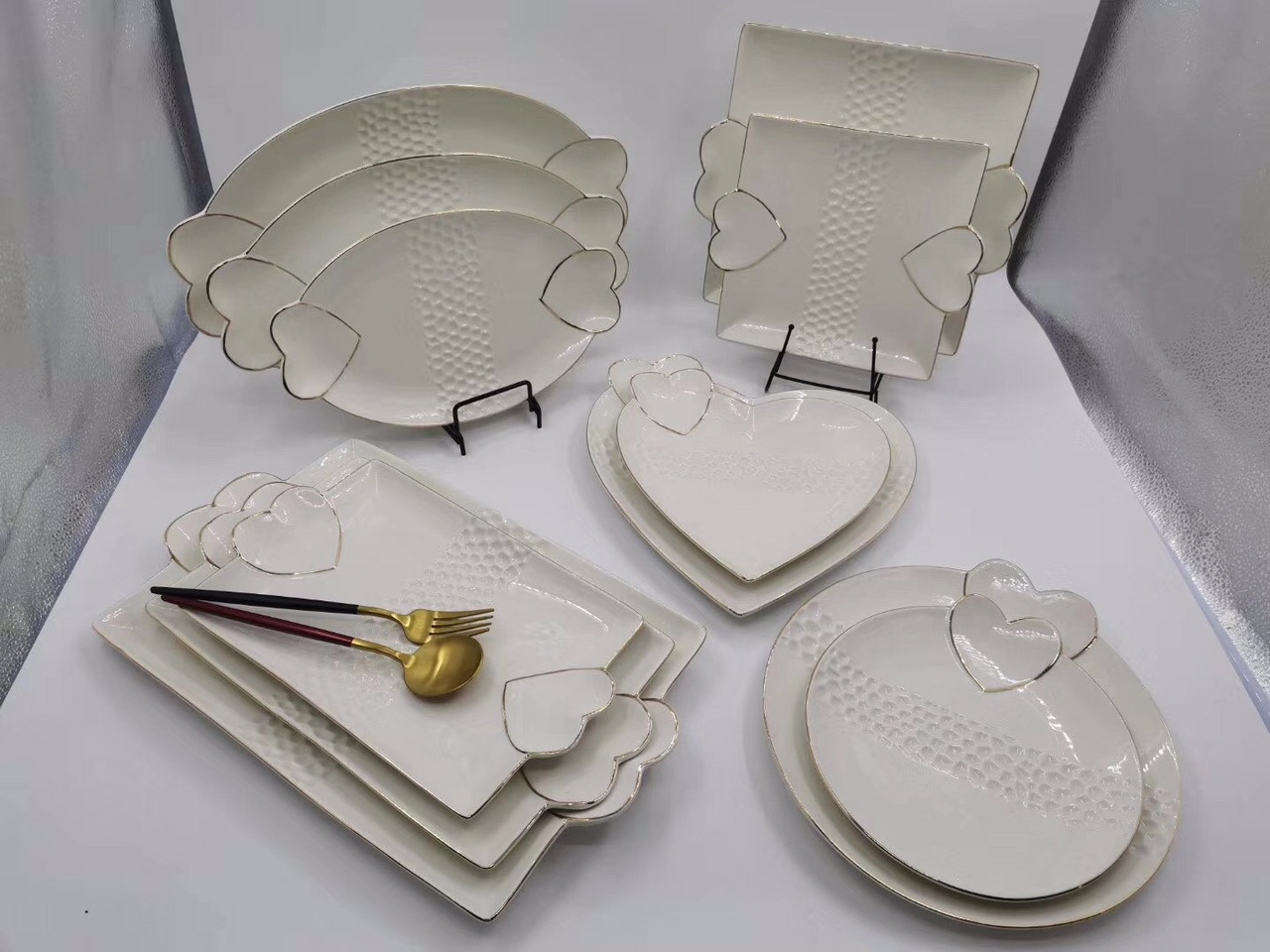 Ceramic gold-painted dinner plates and electroplated fruit plates