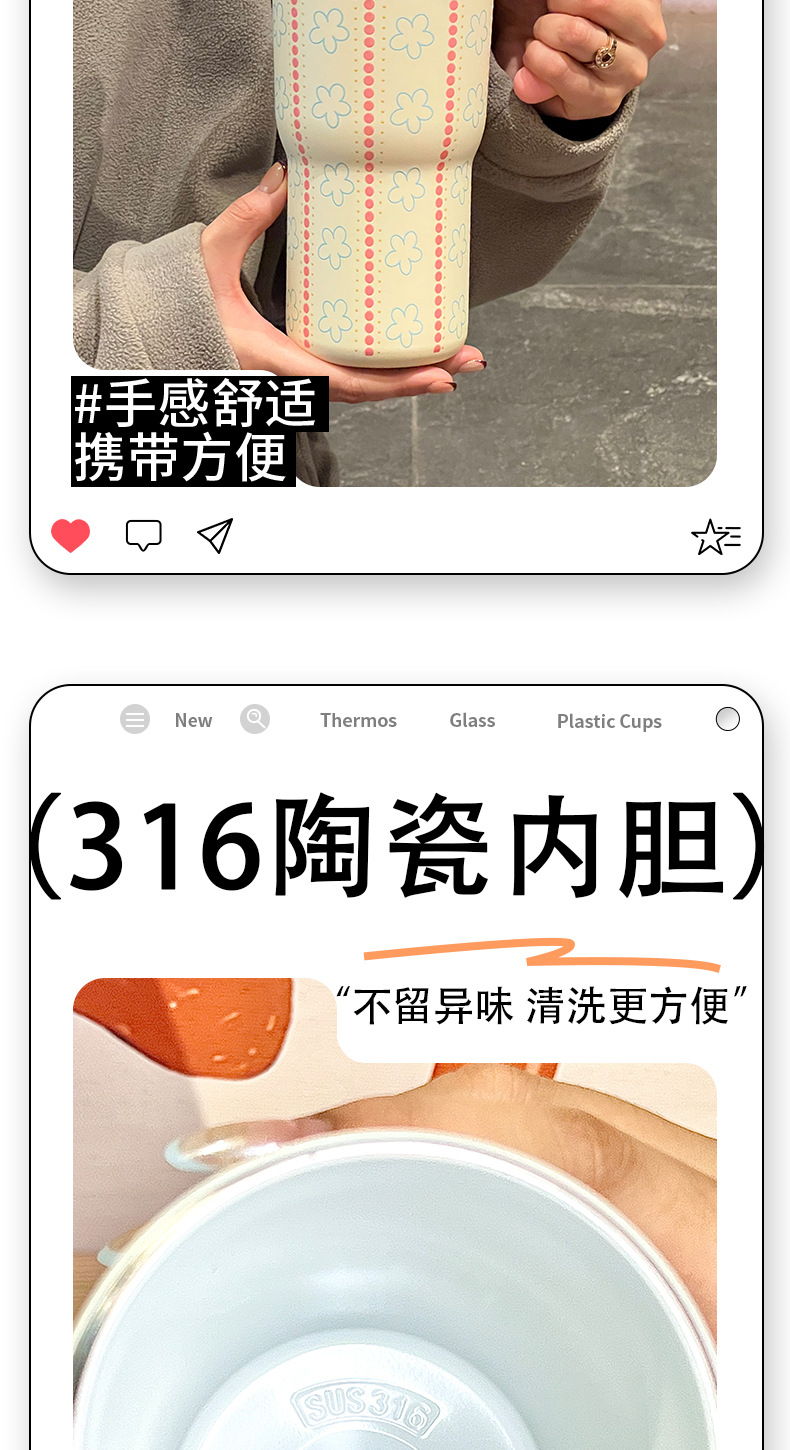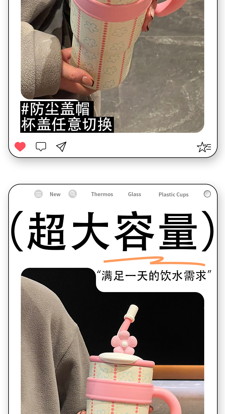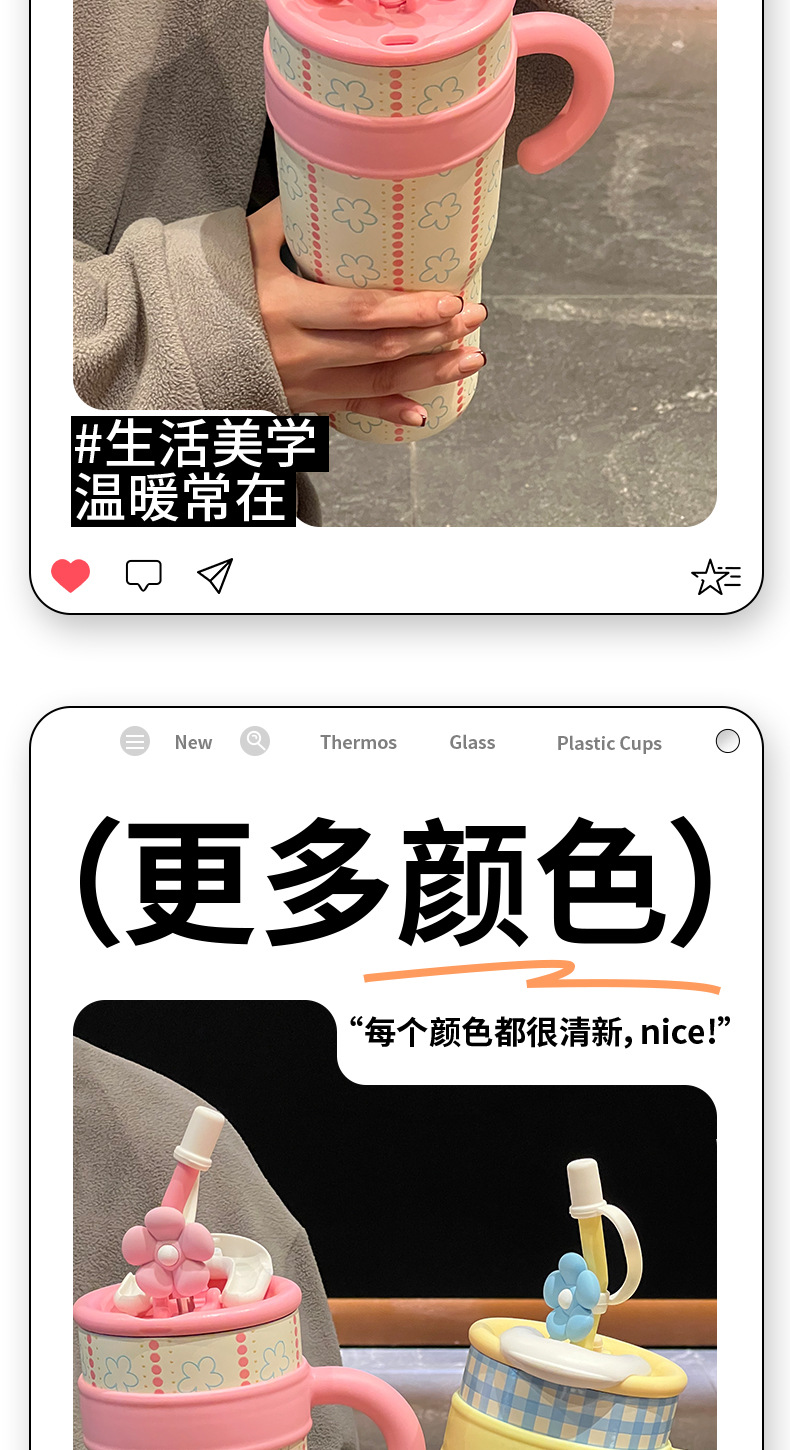 Ceramic inner liner insulated cup, giant handle ice cup, double-drinking straw water cup, large-capacity women's cup with high appearance level