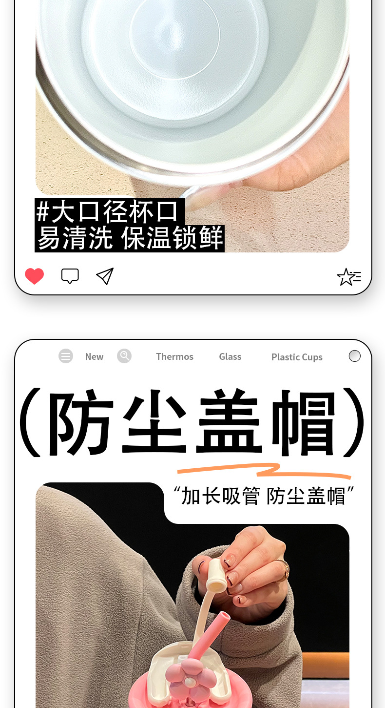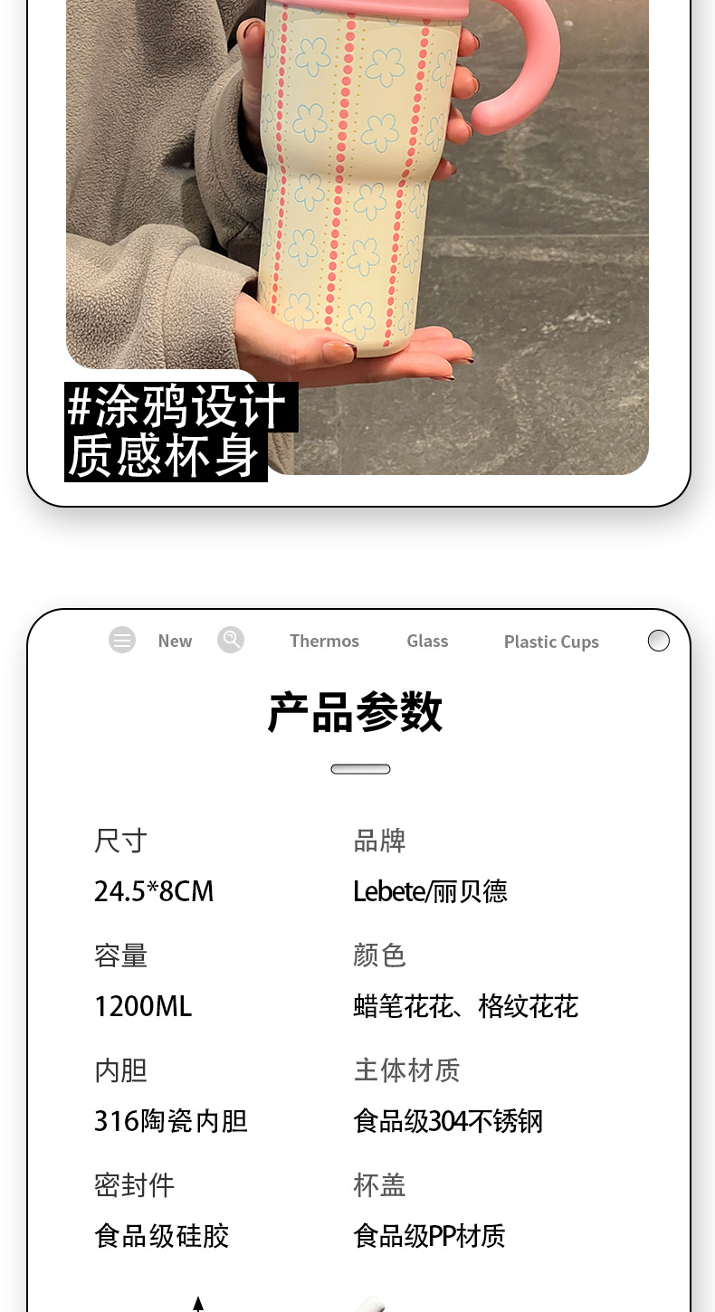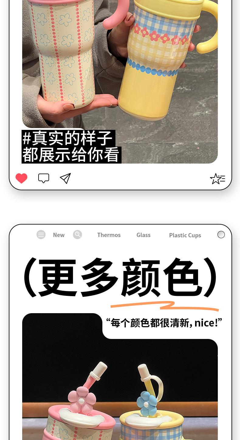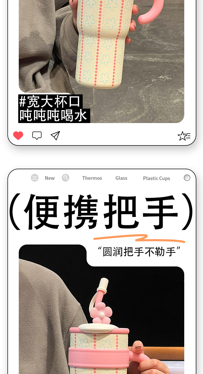 Ceramic inner liner insulated cup, giant handle ice cup, double-drinking straw water cup, large-capacity women's cup with high appearance level