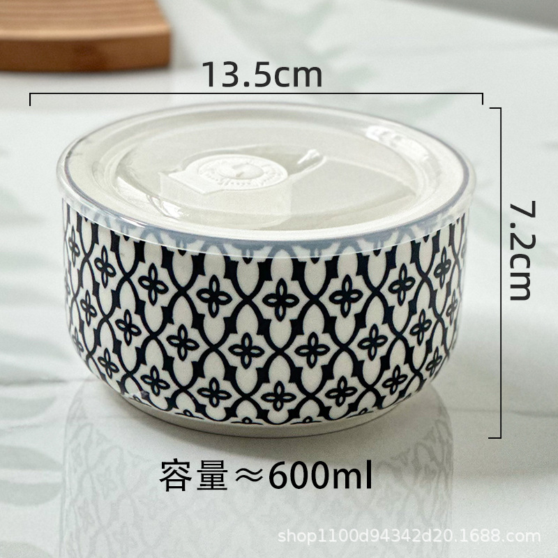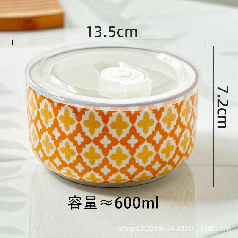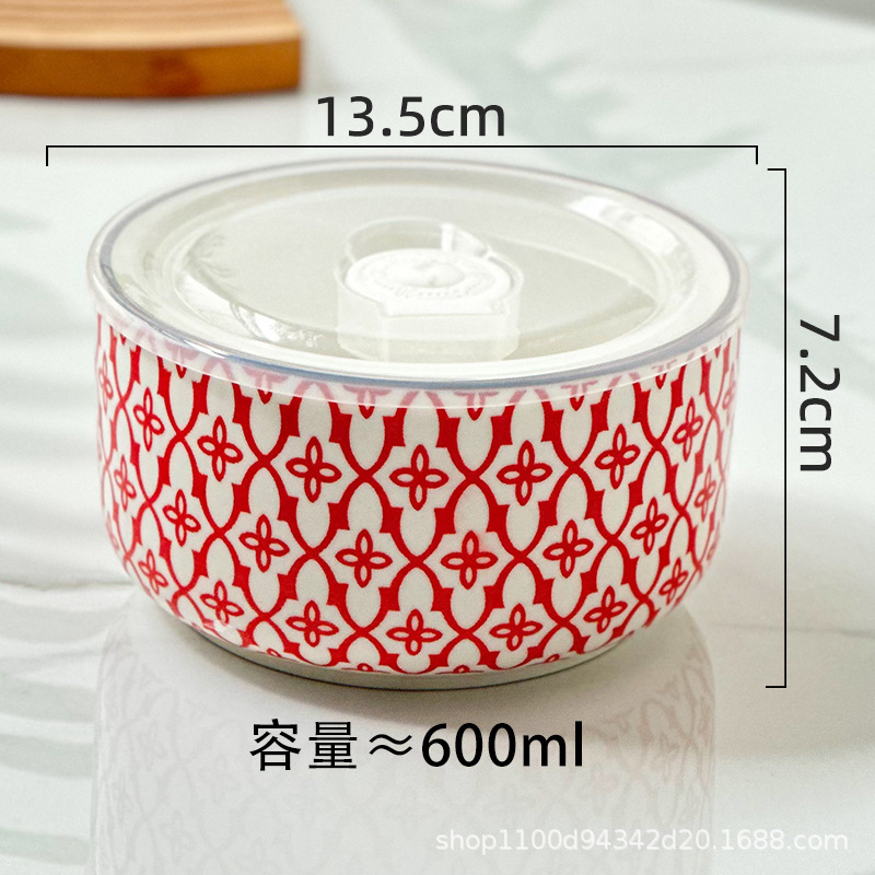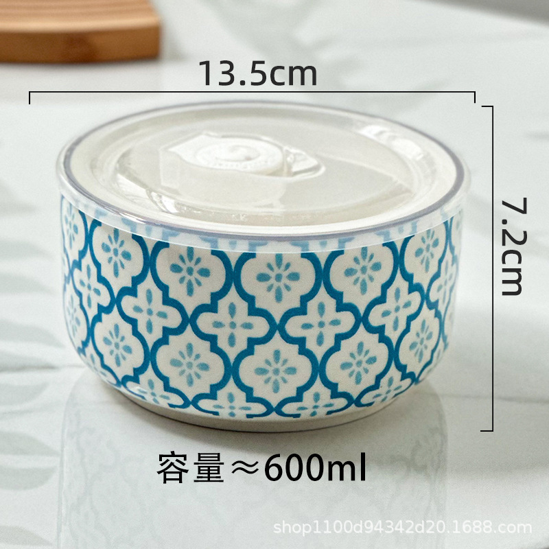 Ceramic lunch box, fresh-keeping box, round bento box with covered bowl, office worker lunch box, microwave oven heating, student instant noodle bowl