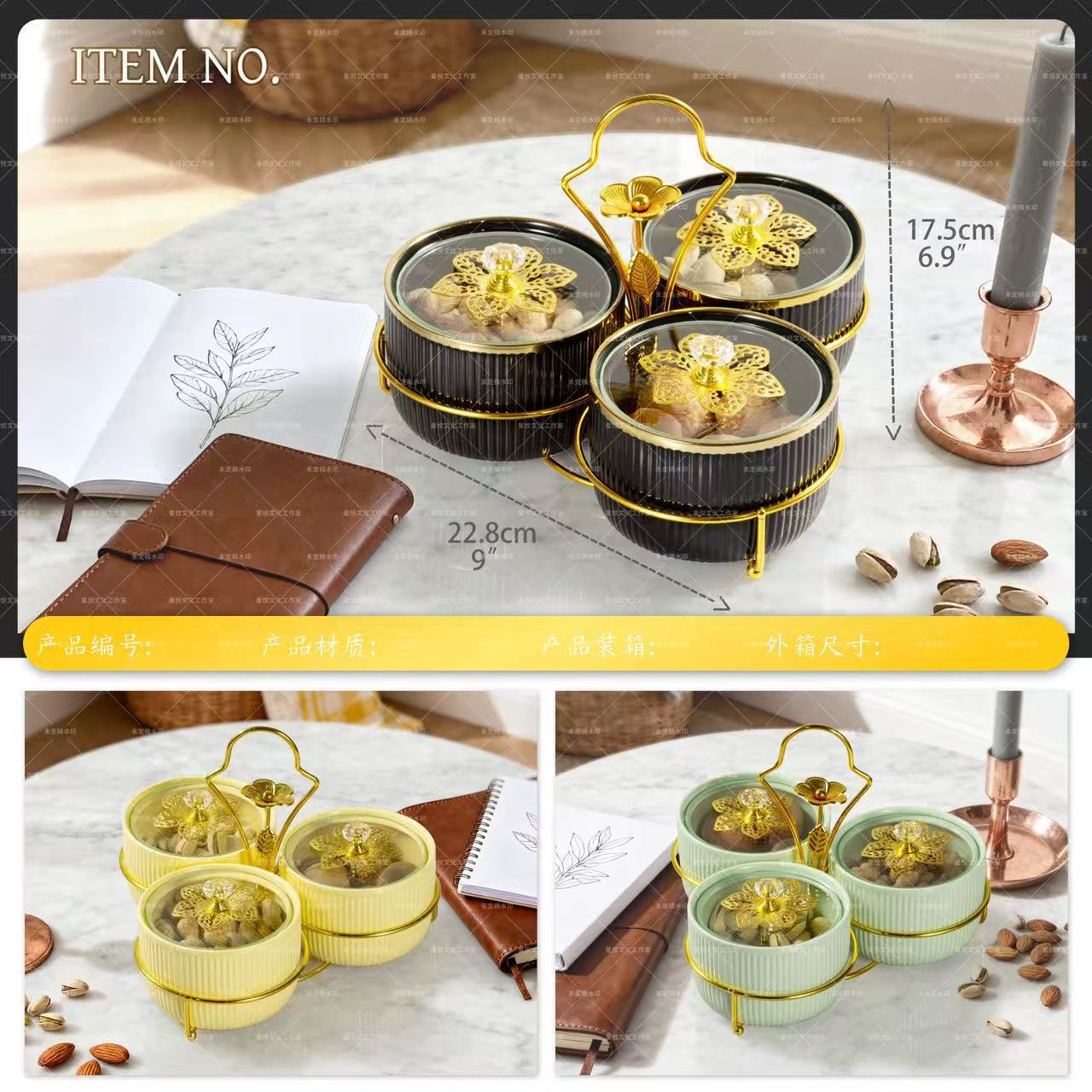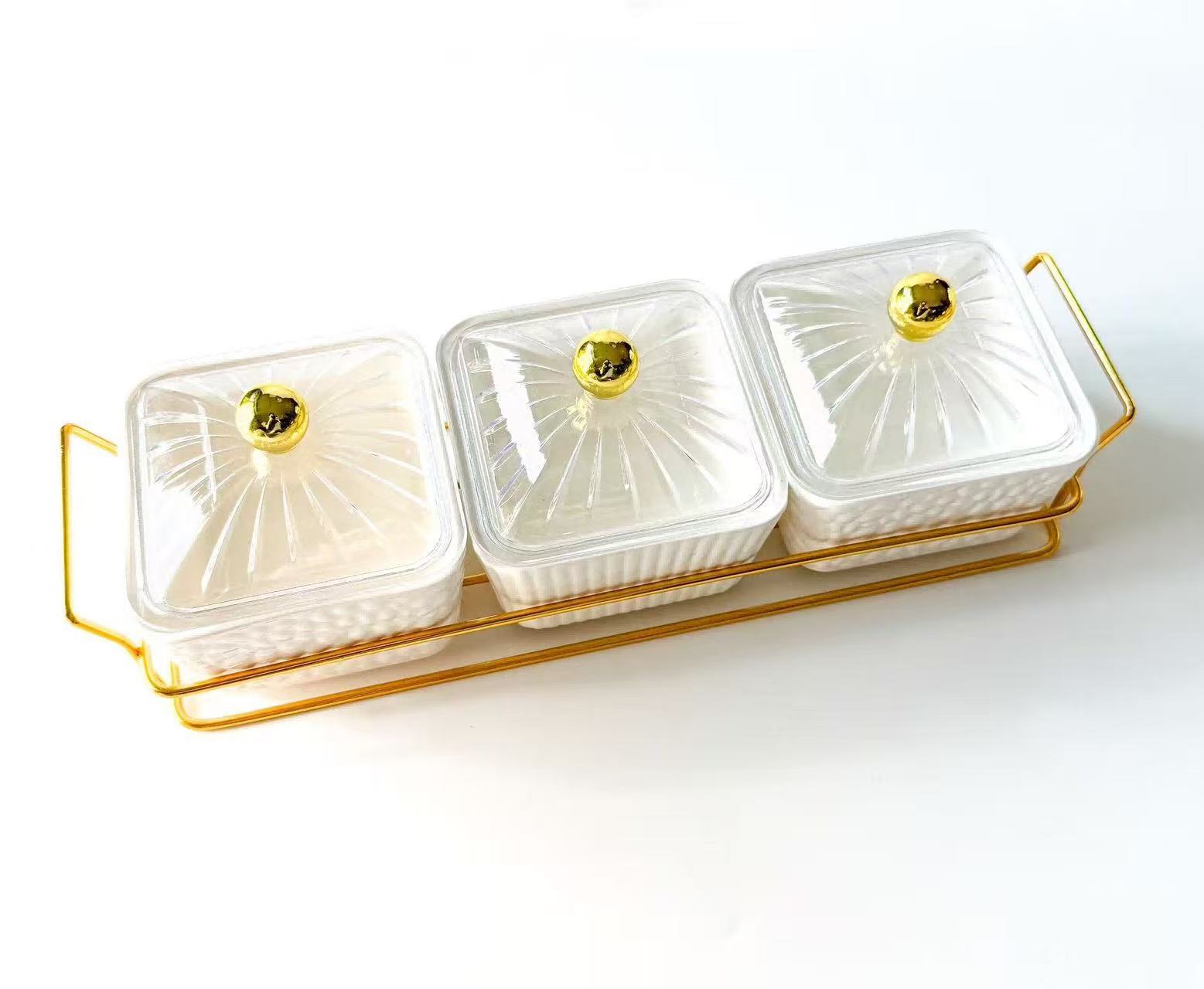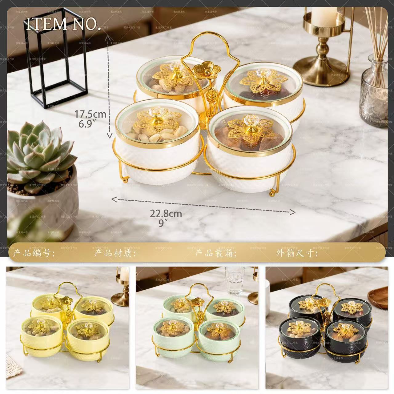 Ceramic plates, ironwork accessories, light luxury fruit plates, snack plates, compartments and platters, home living room, bar, KTV, nuts, dried fruits, candies, snack platters