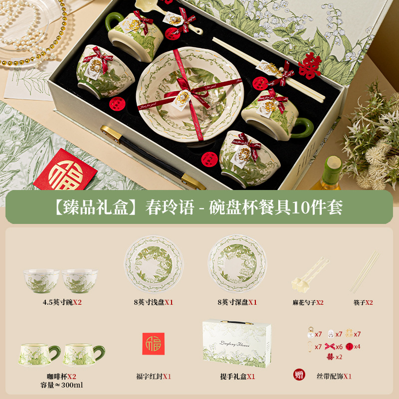 Ceramic tableware, fresh and clean bowl and plate set, household ceramic bowls, high appearance level bowls, plates, plates, rice bowls, wedding ceramic tableware gift box wholesale