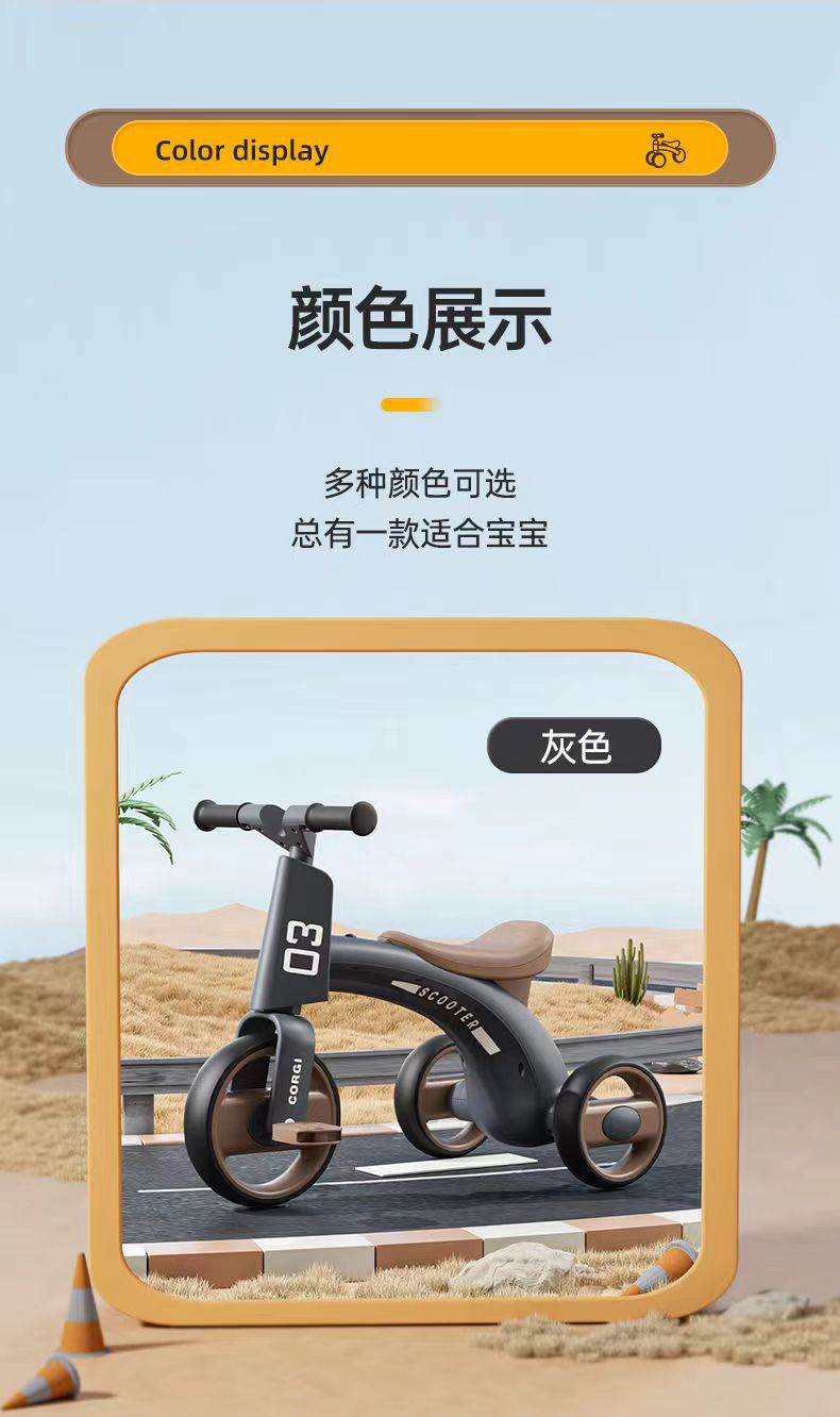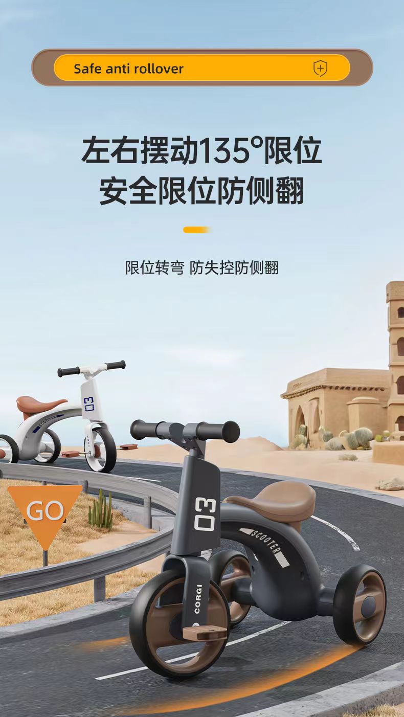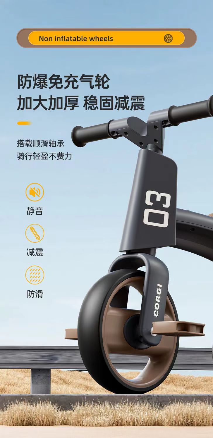 CG Children's tricycle anti-drop and rollover, multi-functional light and music children's bicycle tricycle for children aged 1 to 3