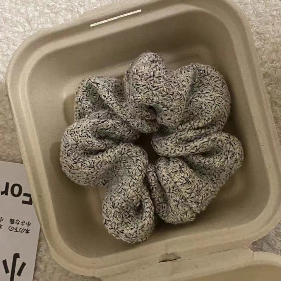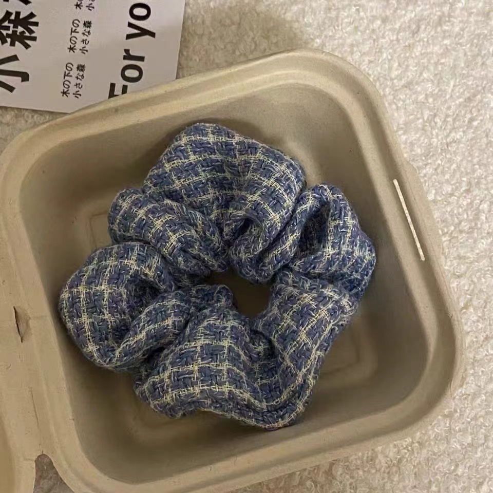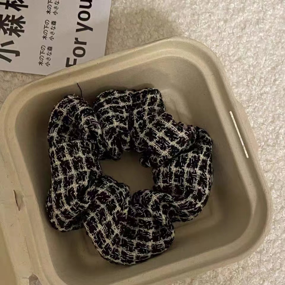 Chanel-style tweed checkered large intestine hair ring, sweet hair ring, autumn and winter hair rope, fashionable hair accessory and headwear