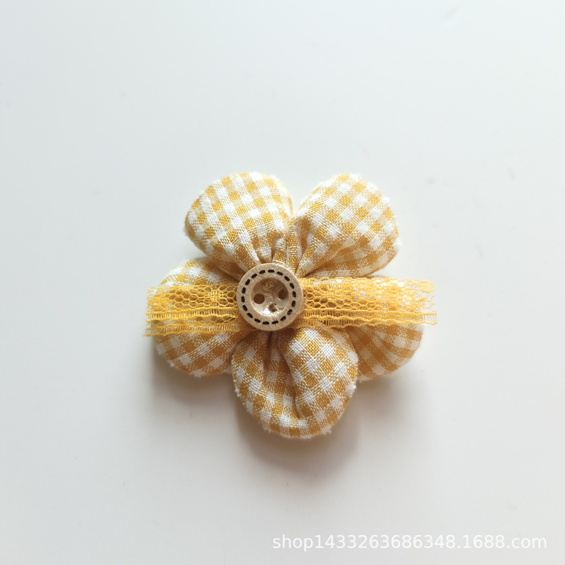 Checkered five-petal flowers with interlocking fabric flowers, handmade children's hair clips and hair strings, DIY headwear and hair accessory materials