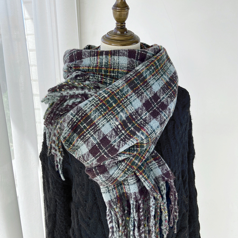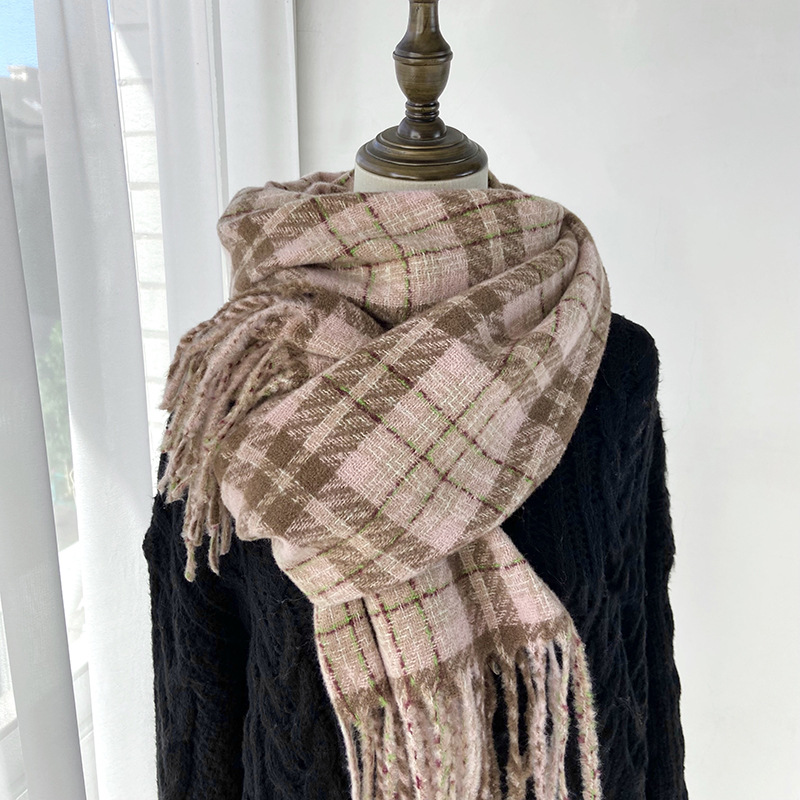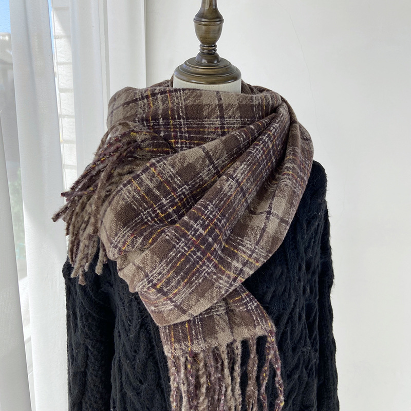Checkered scarf for high-end female lovers, thickened shawl, Korean-style faux cashmere student Maillard, versatile and warm neck