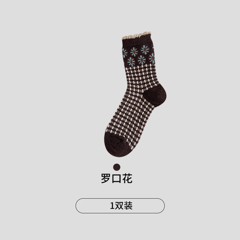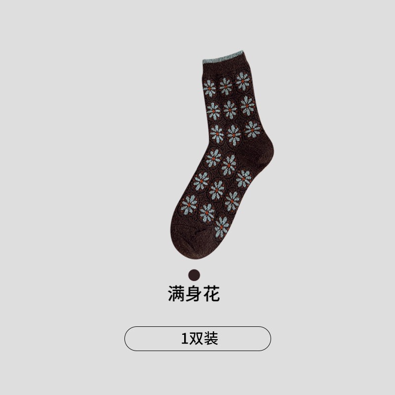 CHEEMY FREE's new autumn and winter vintage floral wool women's socks, Korean ins style, versatile and warm pile socks
