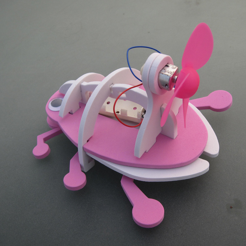 Prepare the materials needed for the test, such as EVA base plate, DIY eyes, fan blades, motor, battery box, etc