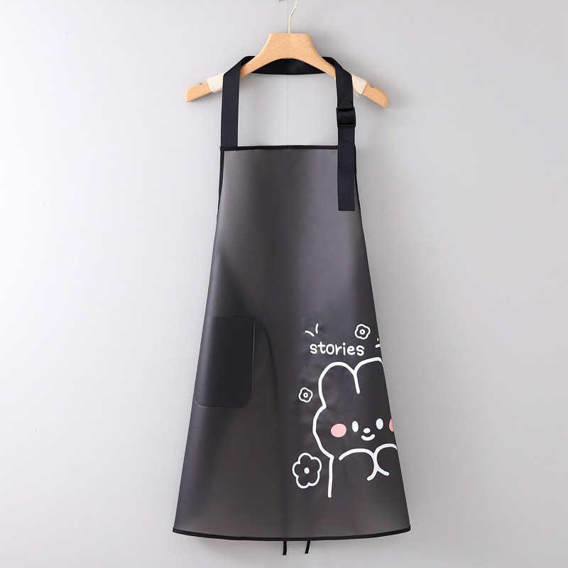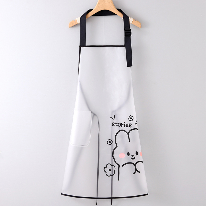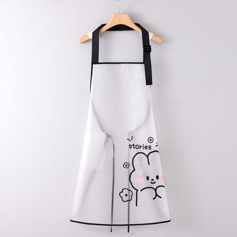 【 Chi Jia 】 Semi-transparent waterproof and oil-resistant TPU apron for women, adjustable tpu cute rabbit print kitchen