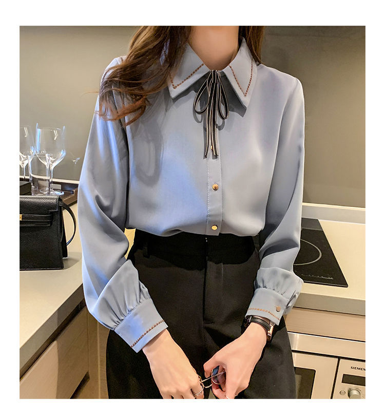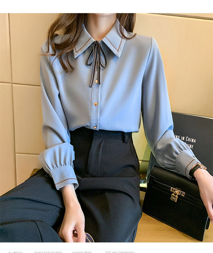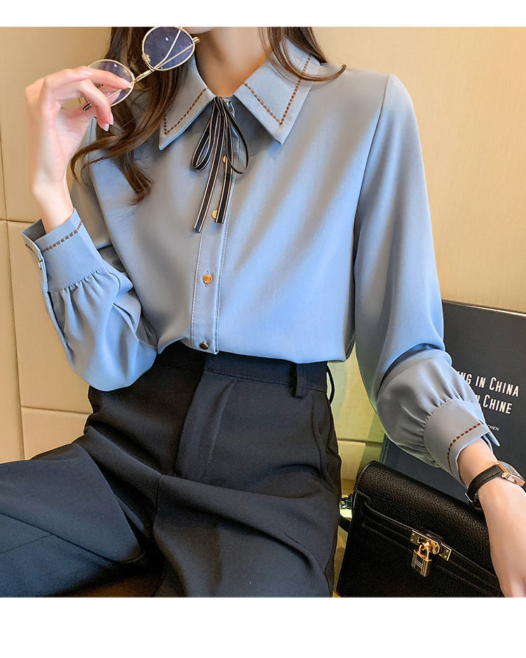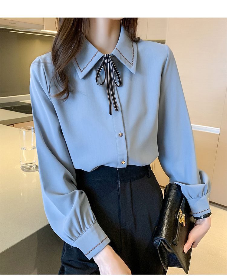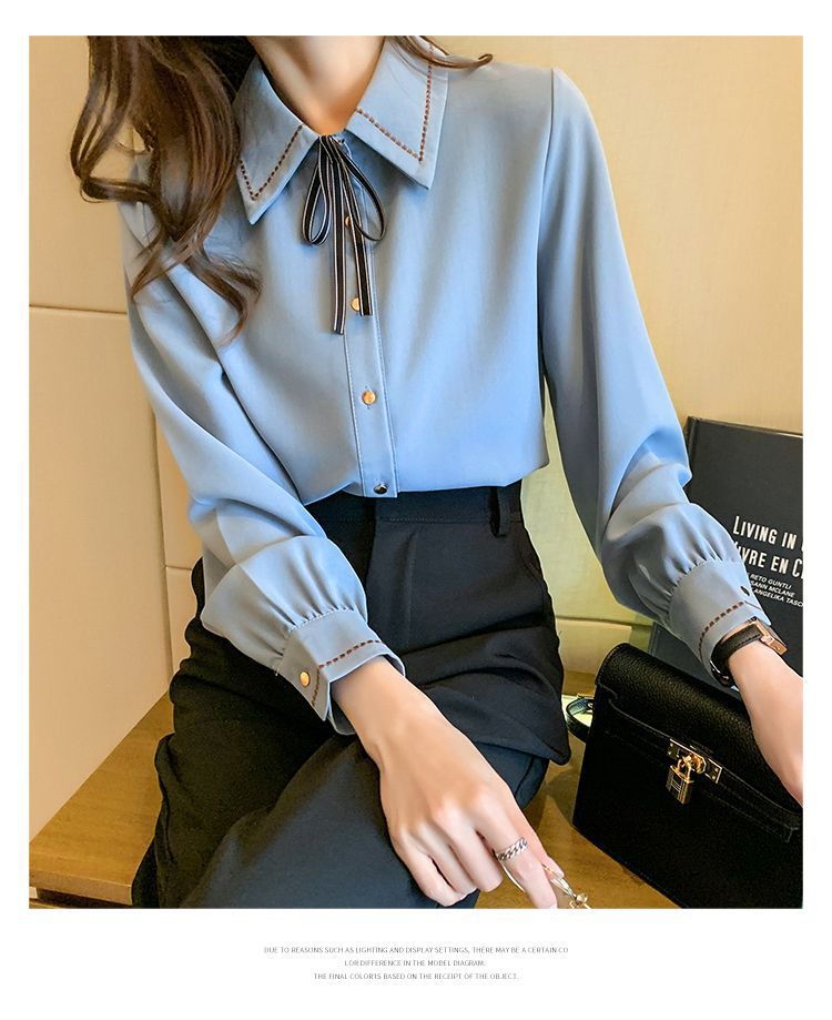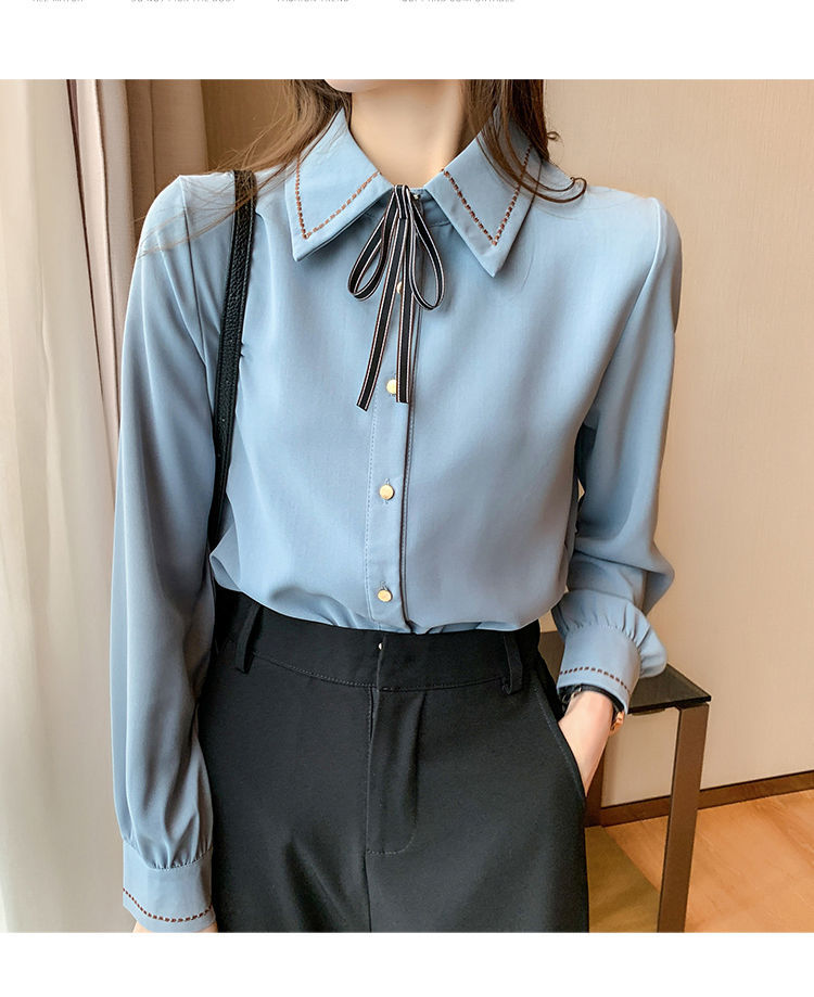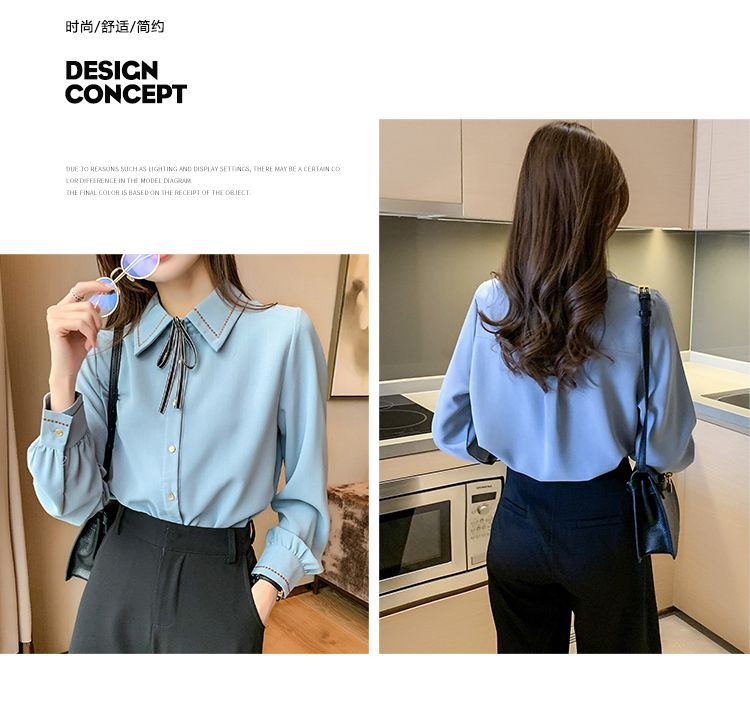 Chiffon shirt for women's Spring and Autumn 2023 new design sense, a niche blue shirt with fleece spring long-sleeved top