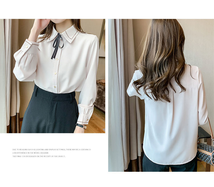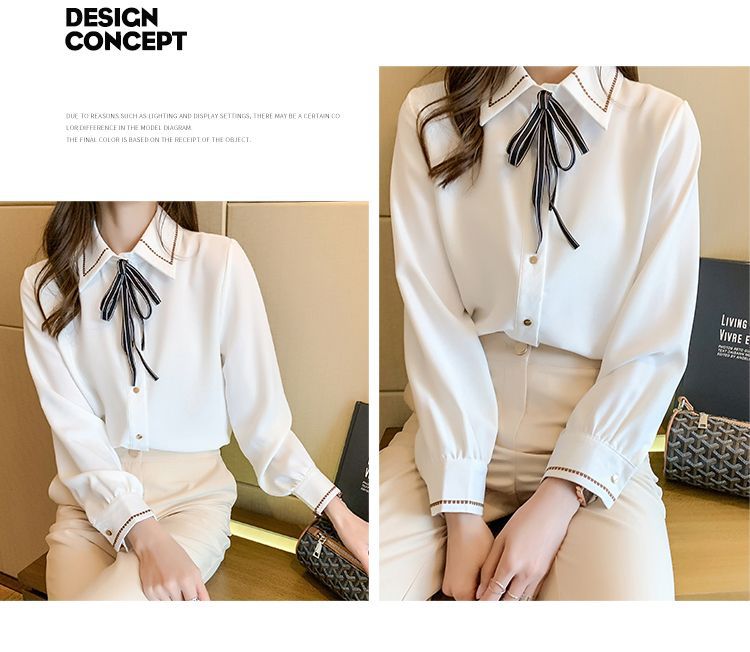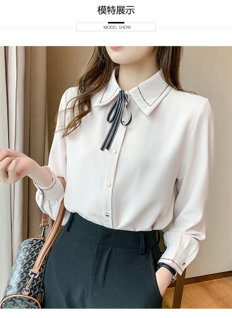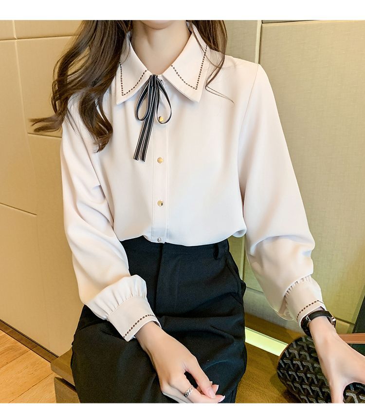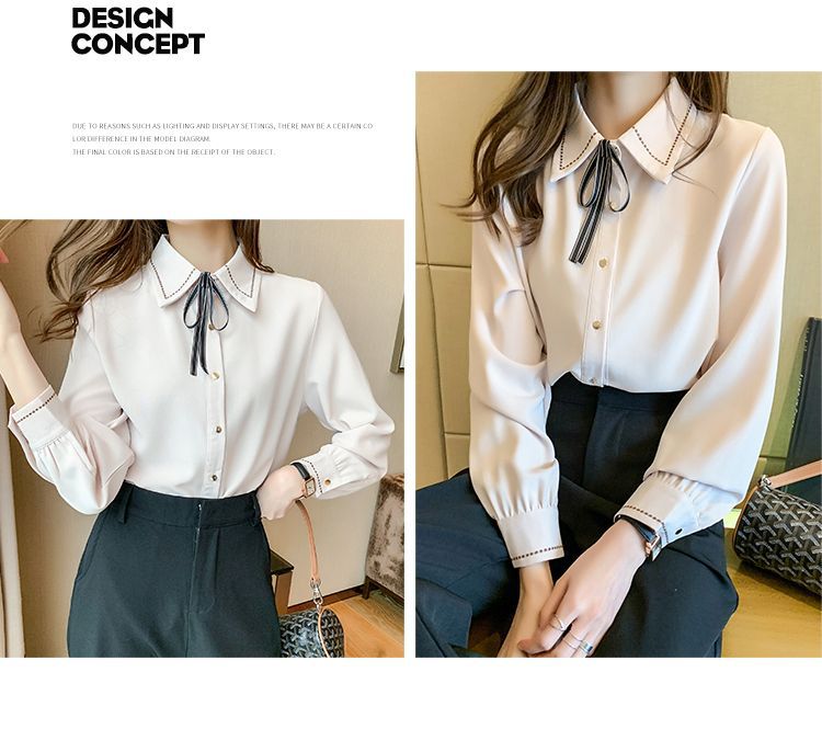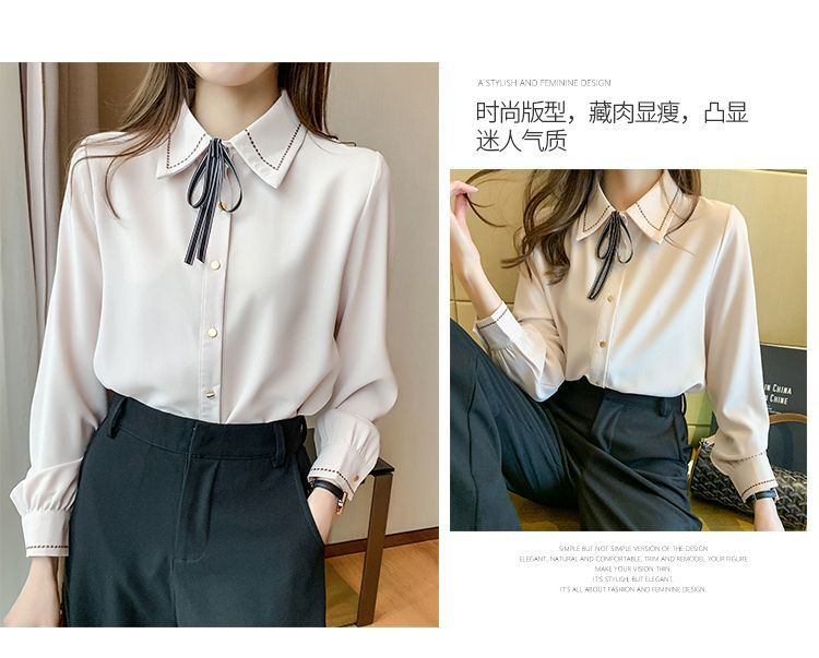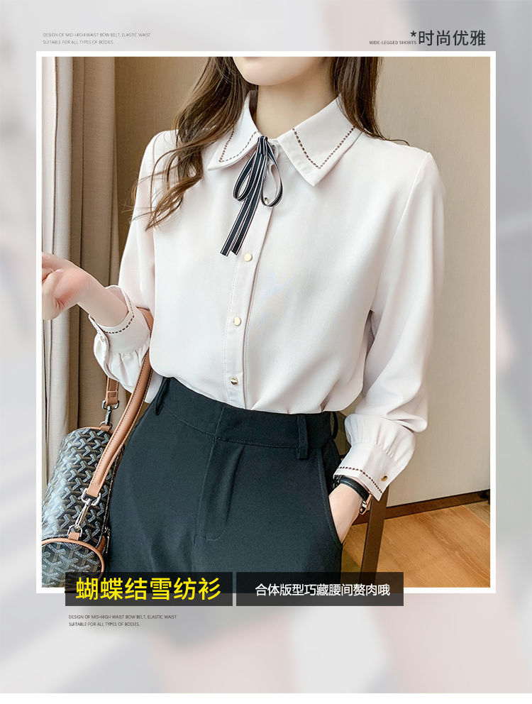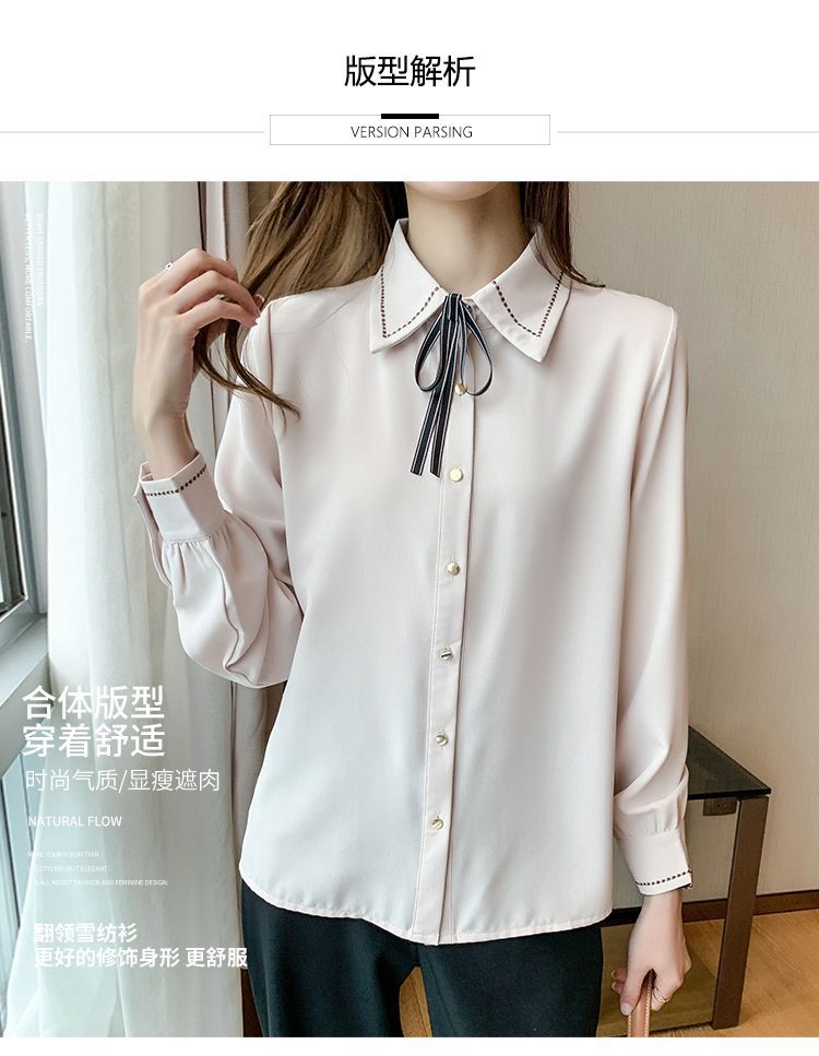 Chiffon shirt for women's Spring and Autumn 2023 new design sense, a niche blue shirt with fleece spring long-sleeved top