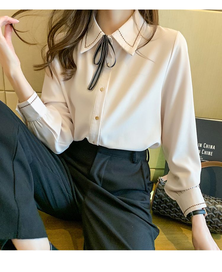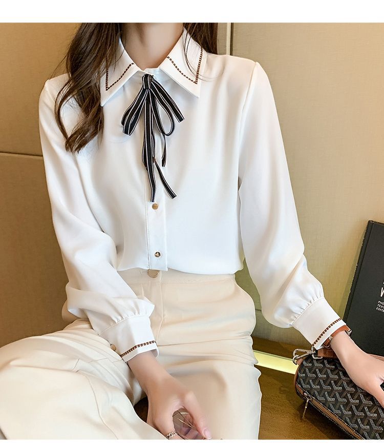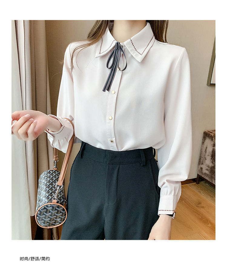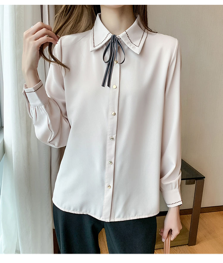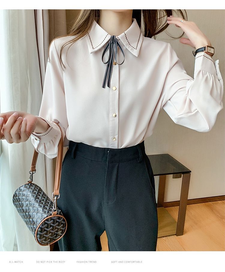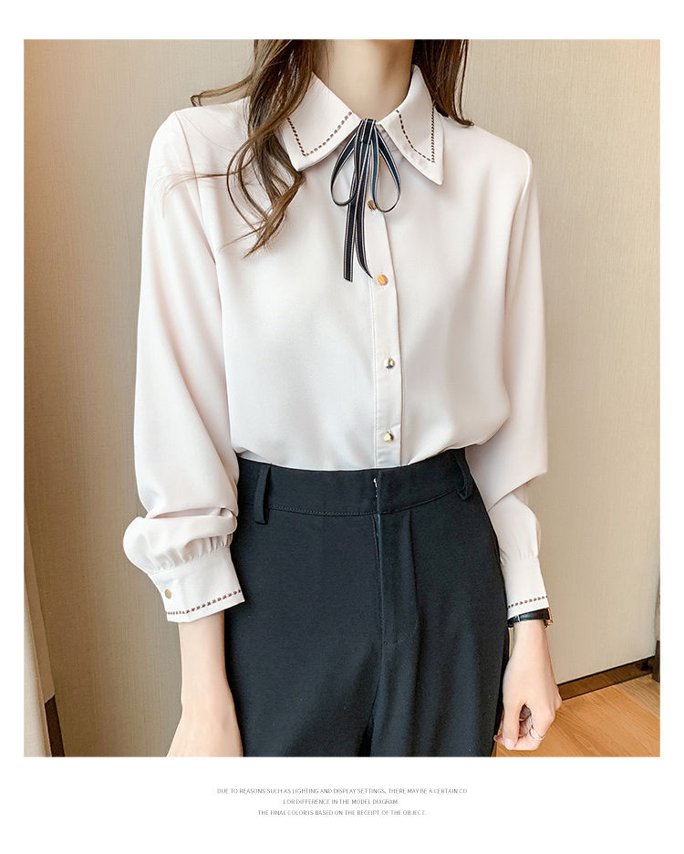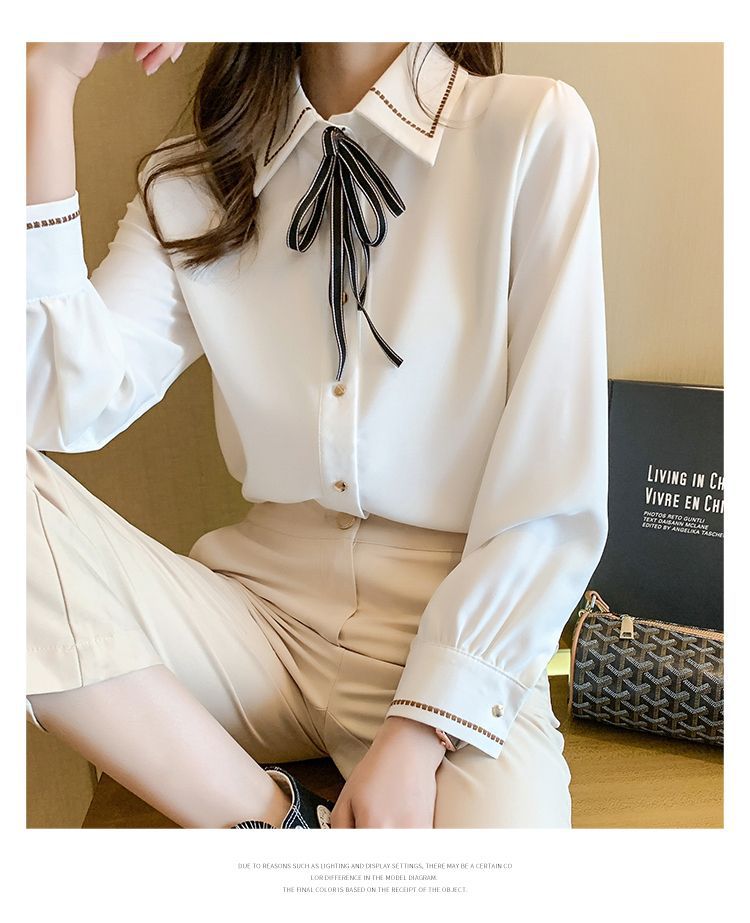 Chiffon shirt for women's Spring and Autumn 2023 new design sense, a niche blue shirt with fleece spring long-sleeved top