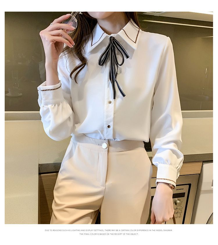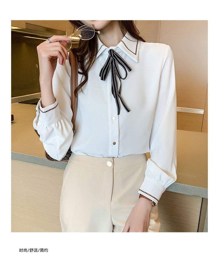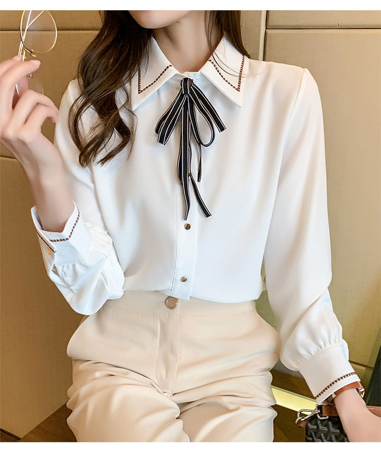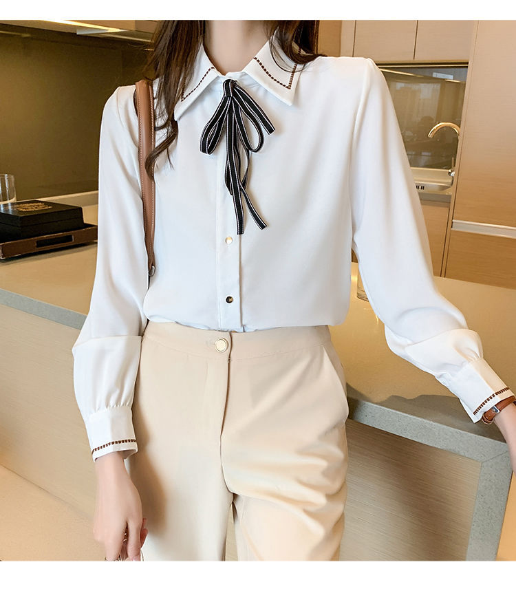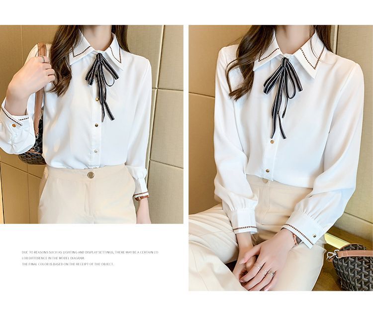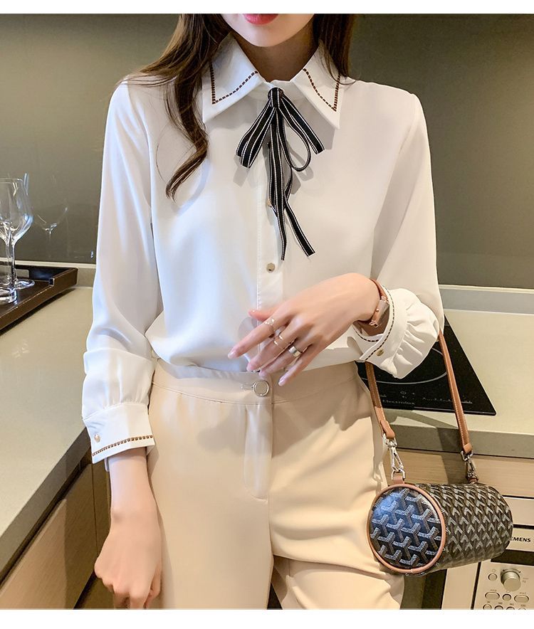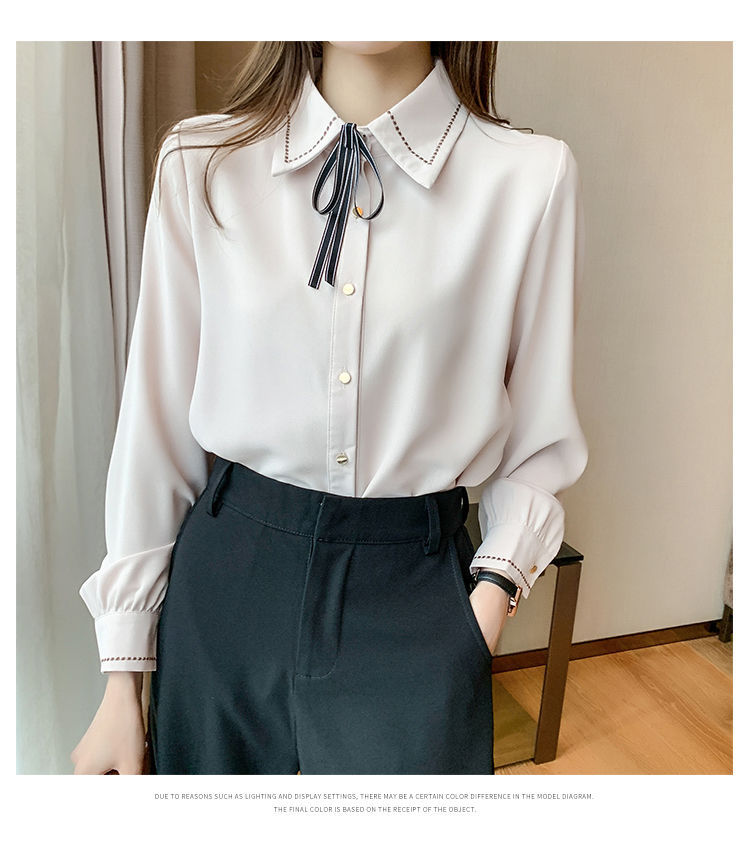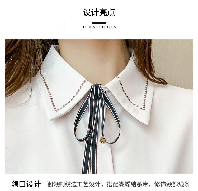 Chiffon shirt for women's Spring and Autumn 2023 new design sense, a niche blue shirt with fleece spring long-sleeved top