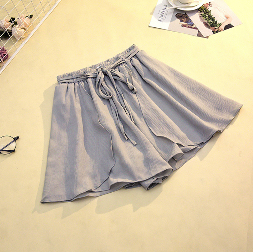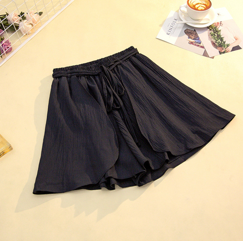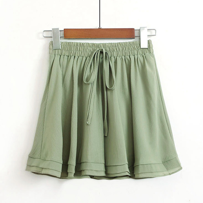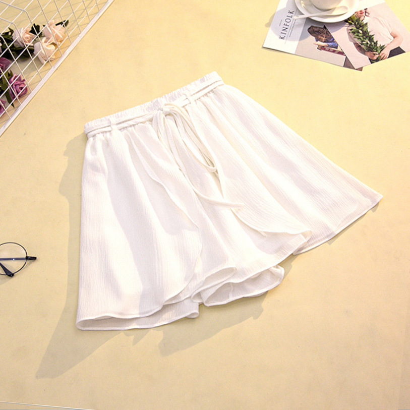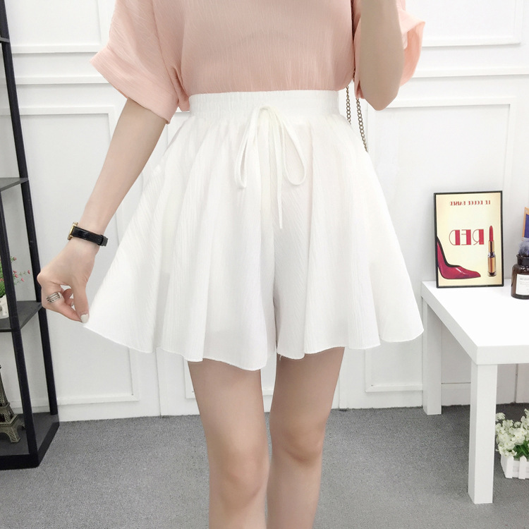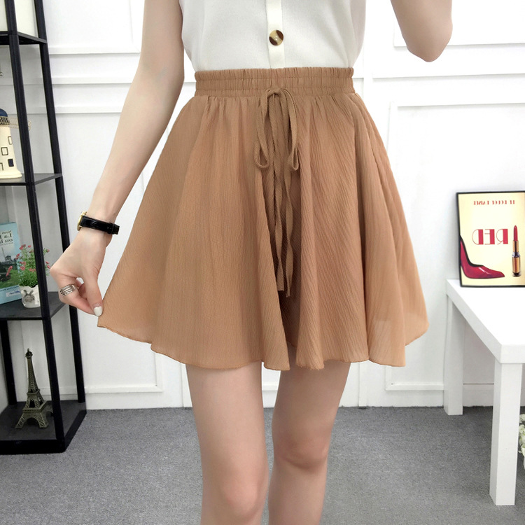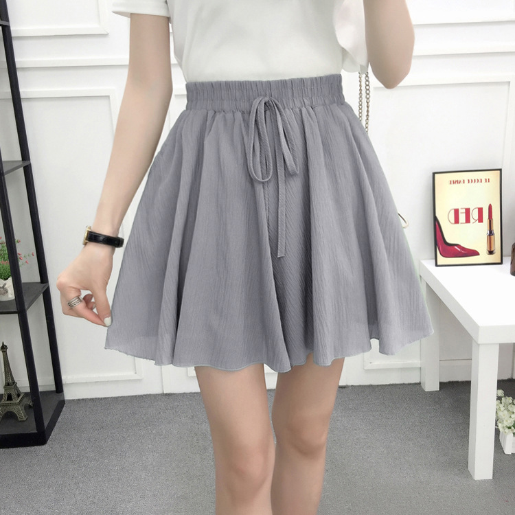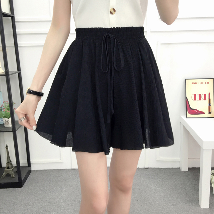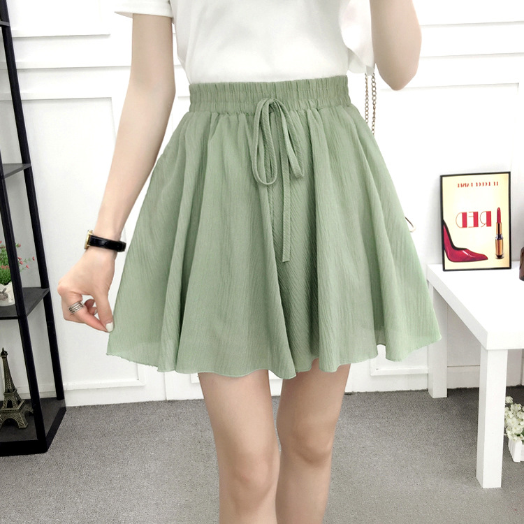 Chiffon skirt, pleated skirt, short skirt, women's summer Korean style loose slimming student high-waisted lotus leaf wide-leg pants, short pants skirt
