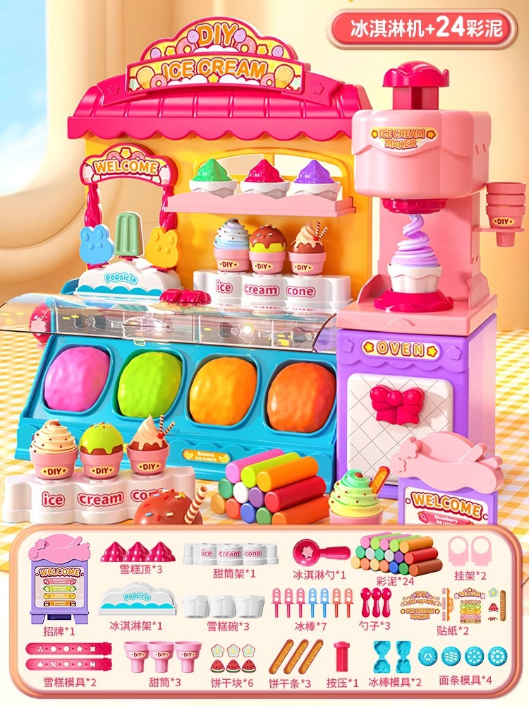Sound and Light ⭐ Ice cream Dessert house 58 pieces "Exquisite Gift Box / 12 Colored Mud included"