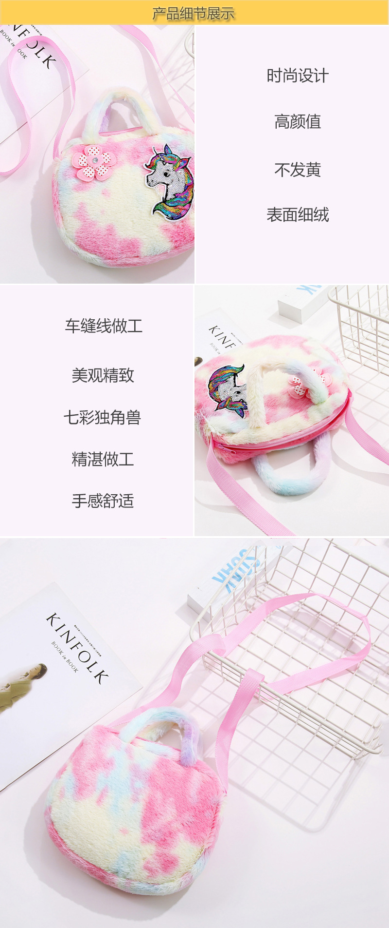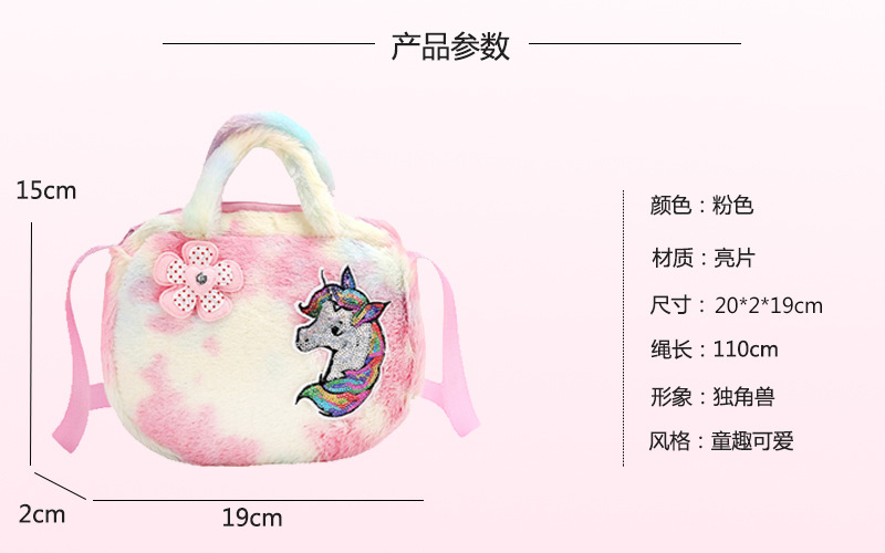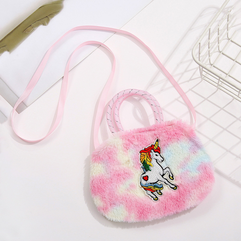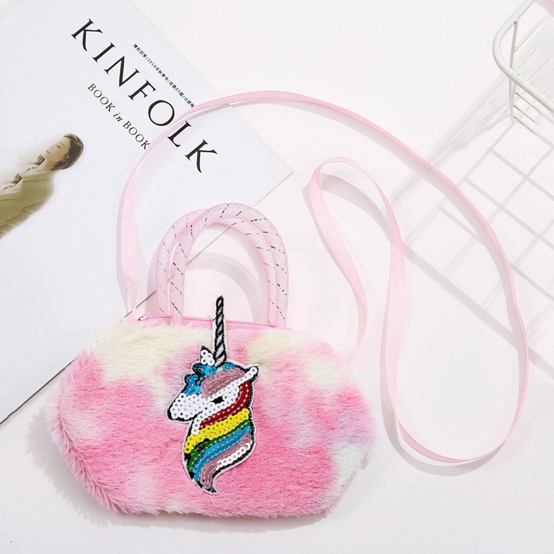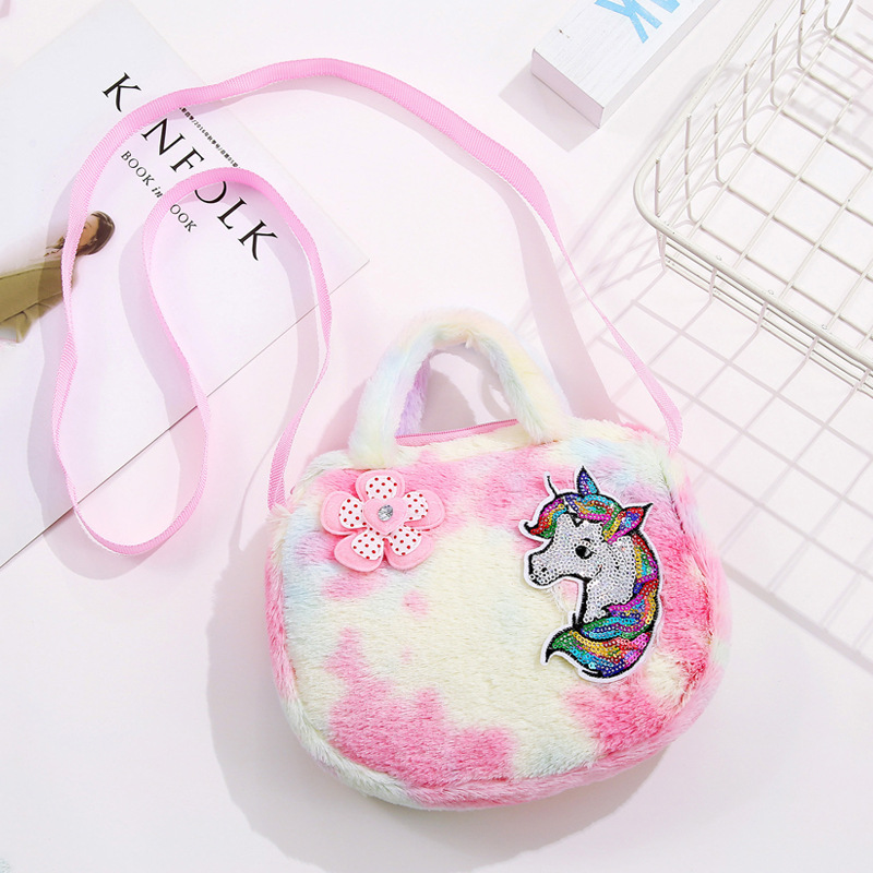 Children's bags, women's crossbody single-shoulder bags, cartoon plush unicorn bags, single-shoulder girls' bags, cute handbags