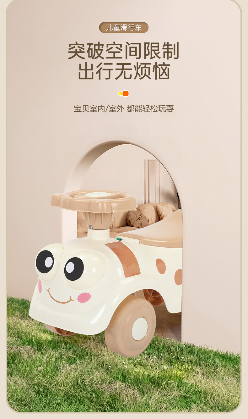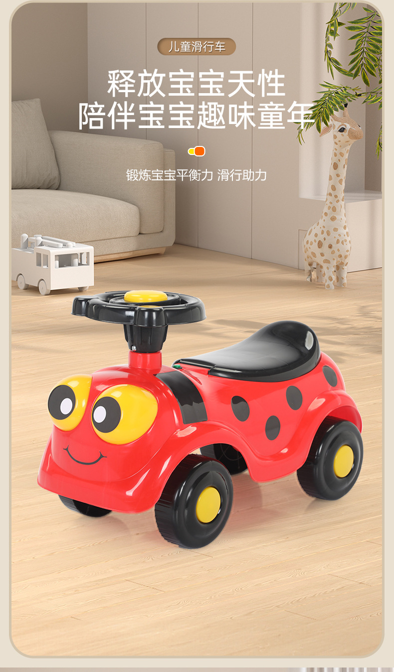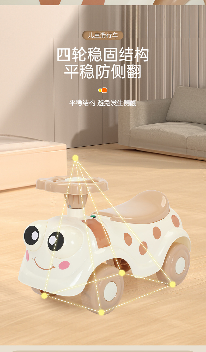Children's balance car, 1-3 years old children's slide car, baby slide car, peanut car, anti-rollover, music and light slide car