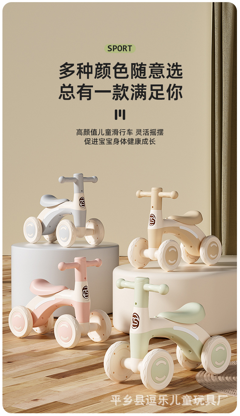 Children's balance scooters 1-3-year-old baby walkers, infants and toddlers without pedals, four-wheel sliding scooters for children