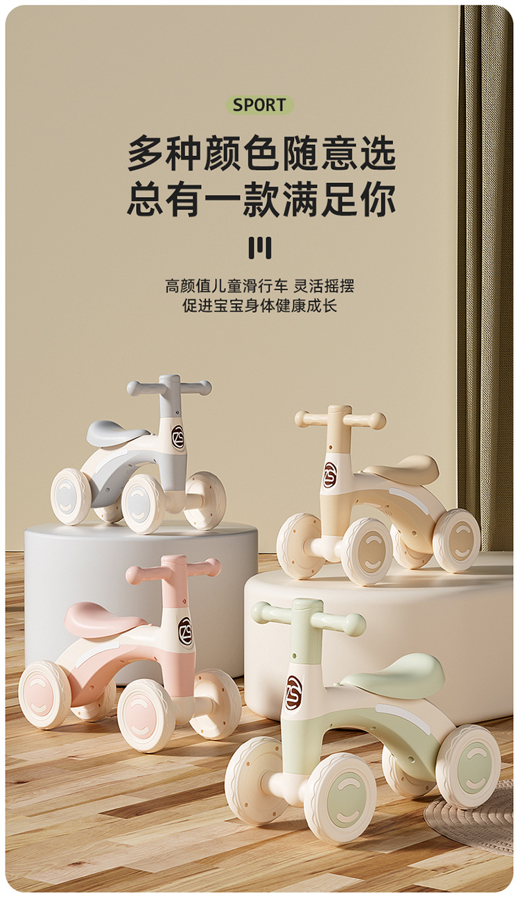 Children's balance scooters for 1-3-year-old babies and toddlers, four-wheel sliding scooters without pedals, walking walkers, and walking AIDS