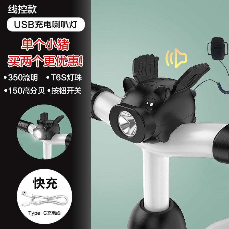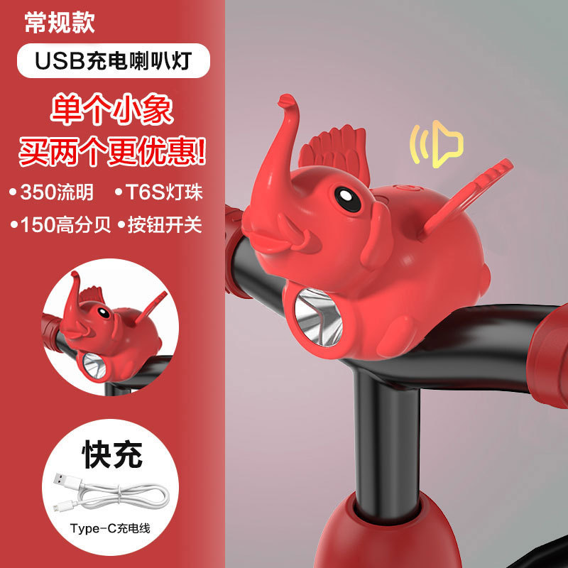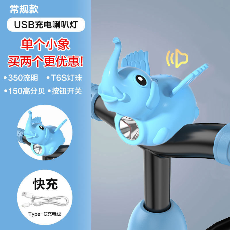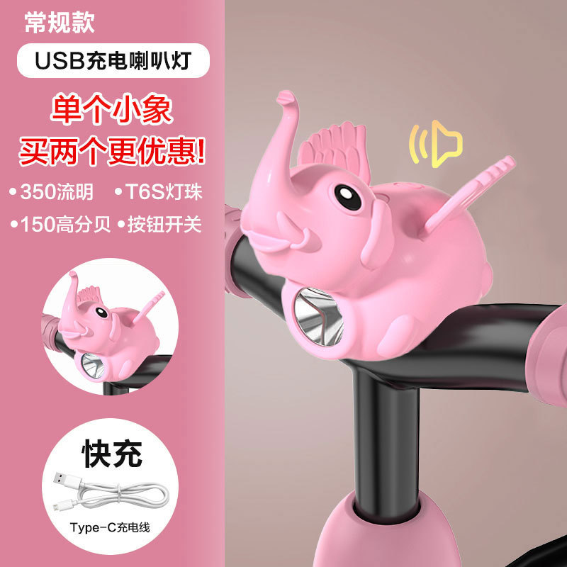 Children's bicycle light, night riding charging horn light, little Flying Pig, Little Flying Elephant, super loud bell, balance bike night riding headlight