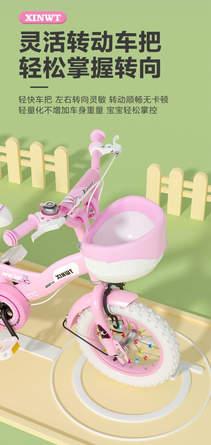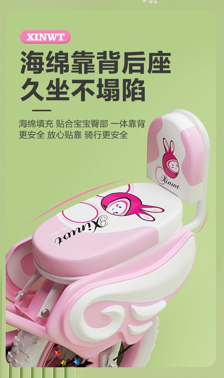 ∝ The low-end model has no basket and the rear seat color is random -14 inches, suitable for 3-4 years old, height 95-105 cm