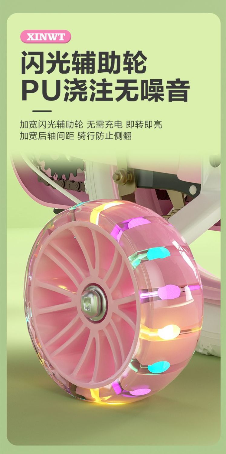 ∝ Pink flashing wheel + gift package + guardrail -14 inches suitable for 3-4 years old height 95-105