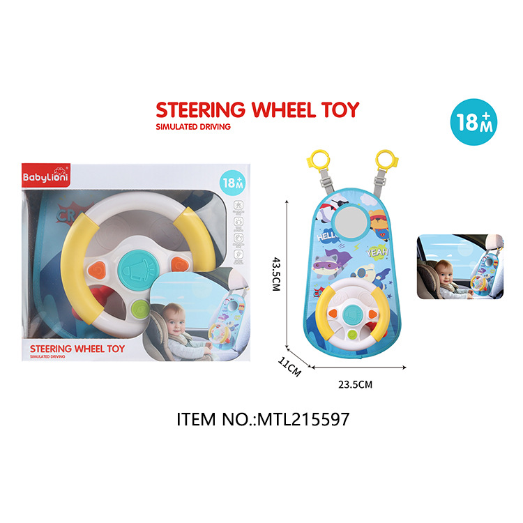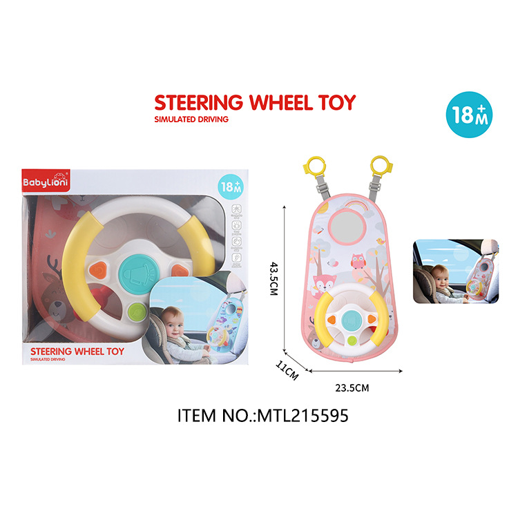 Children's car simulation sound and light steering wheel, baby intelligence multi-functional cartoon car driving early education toy, shape recognition matching toy