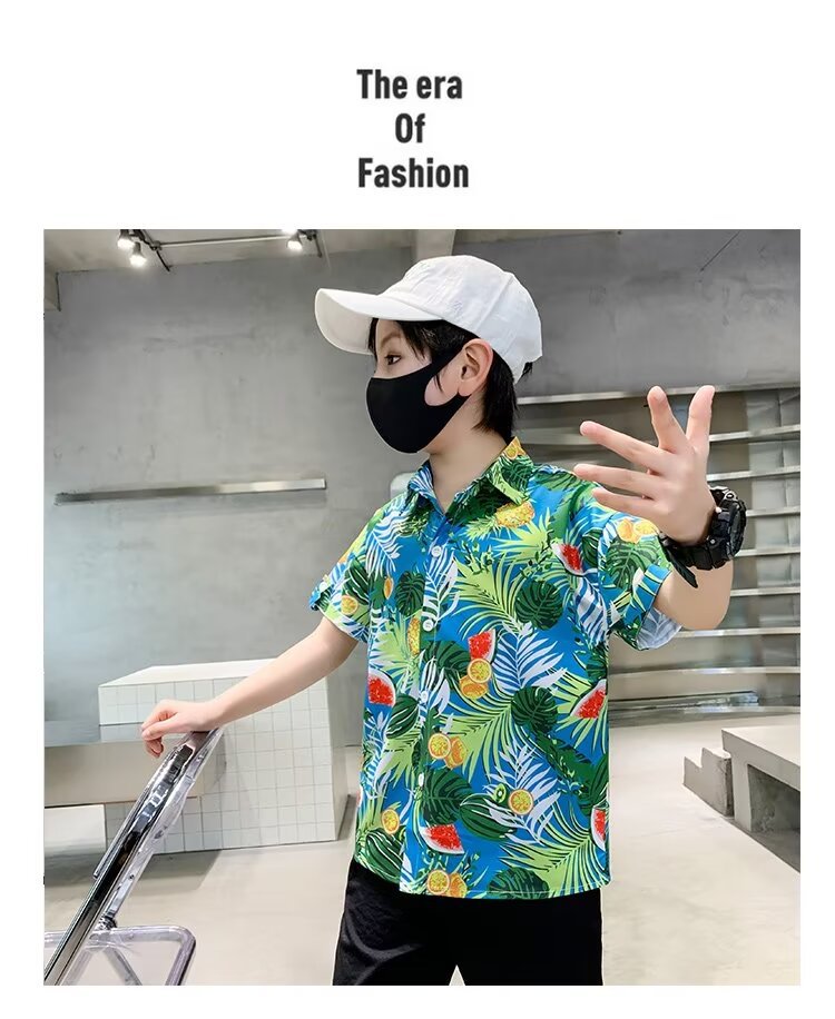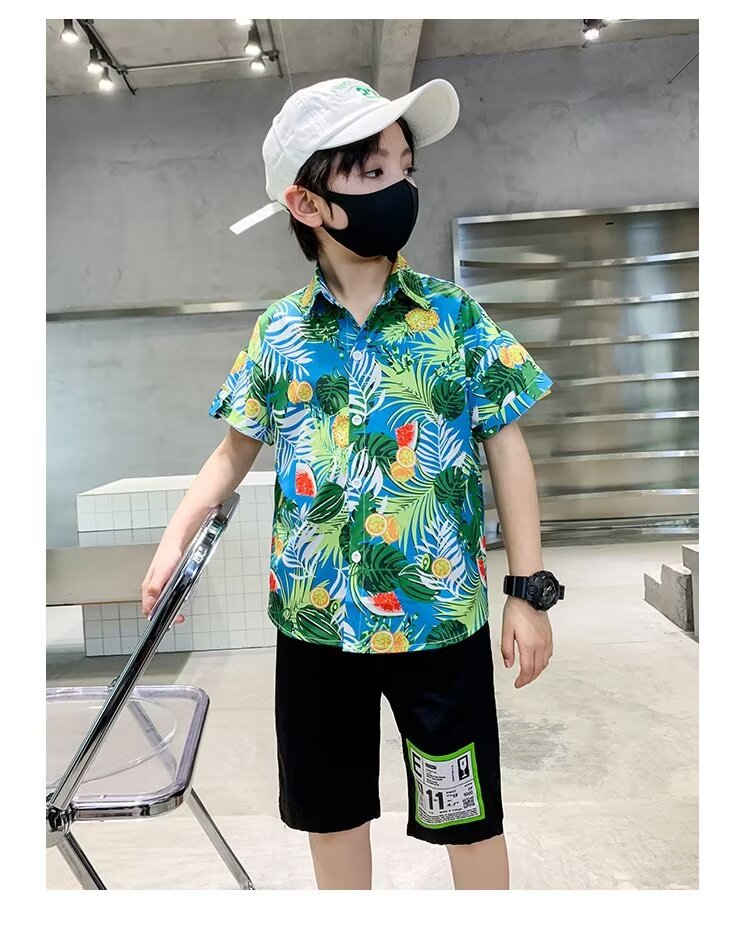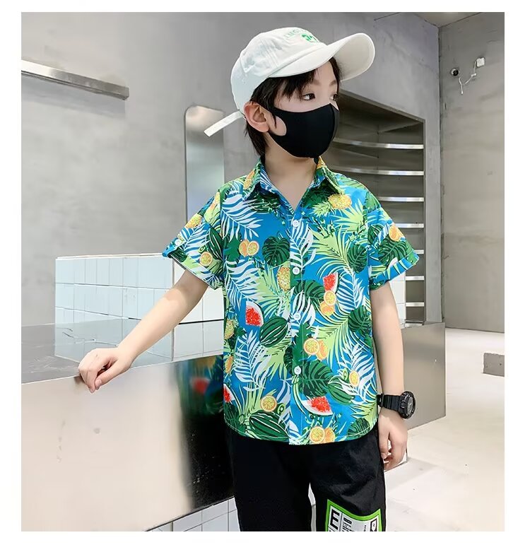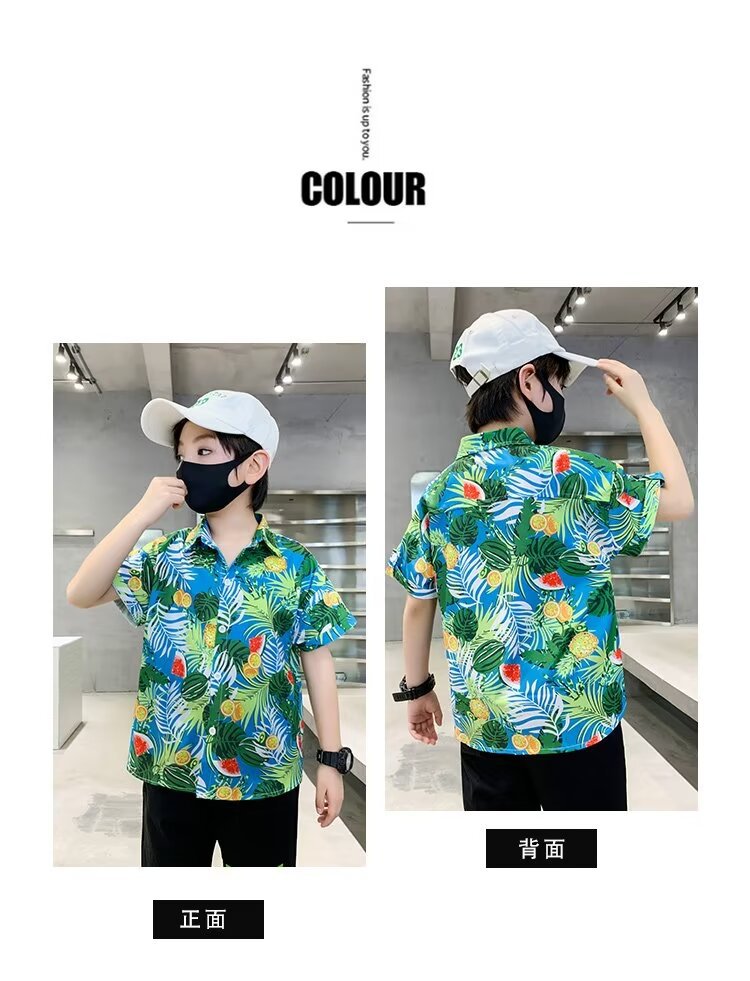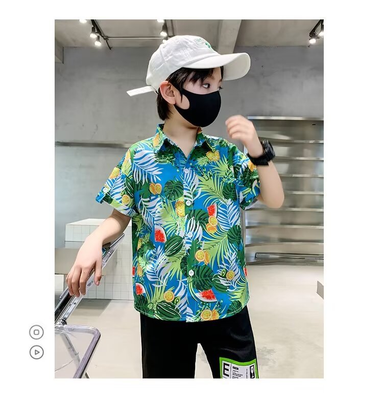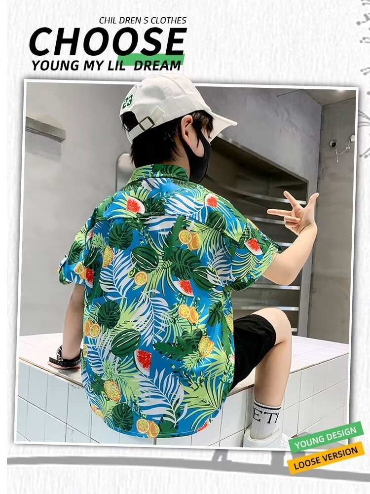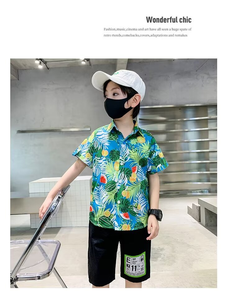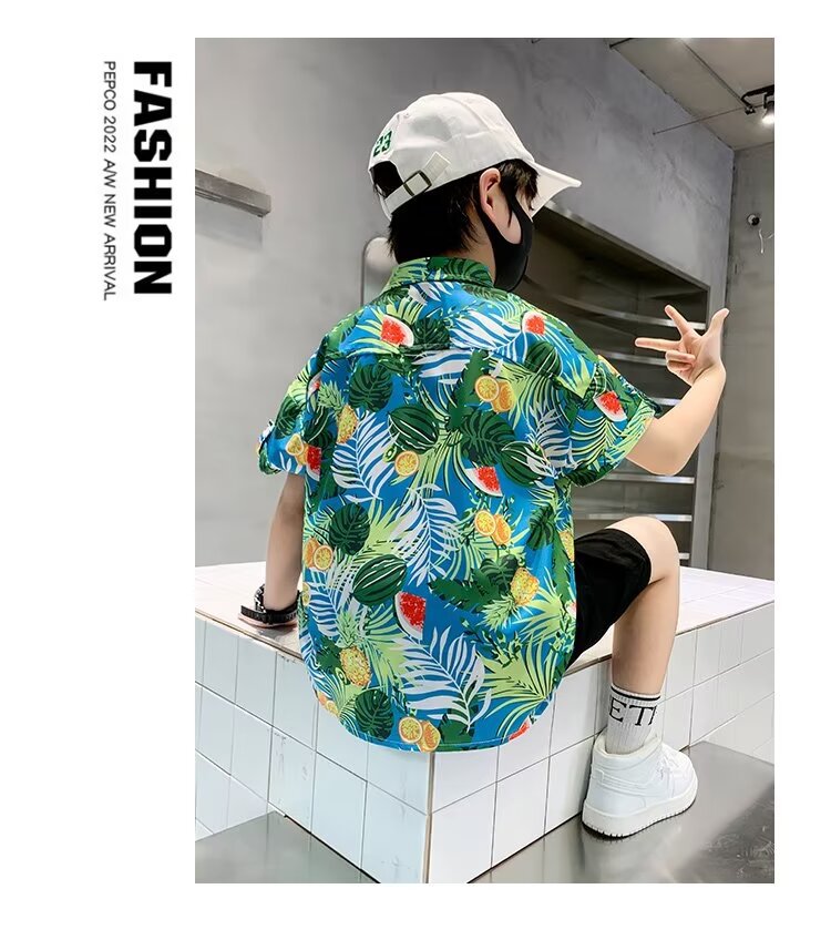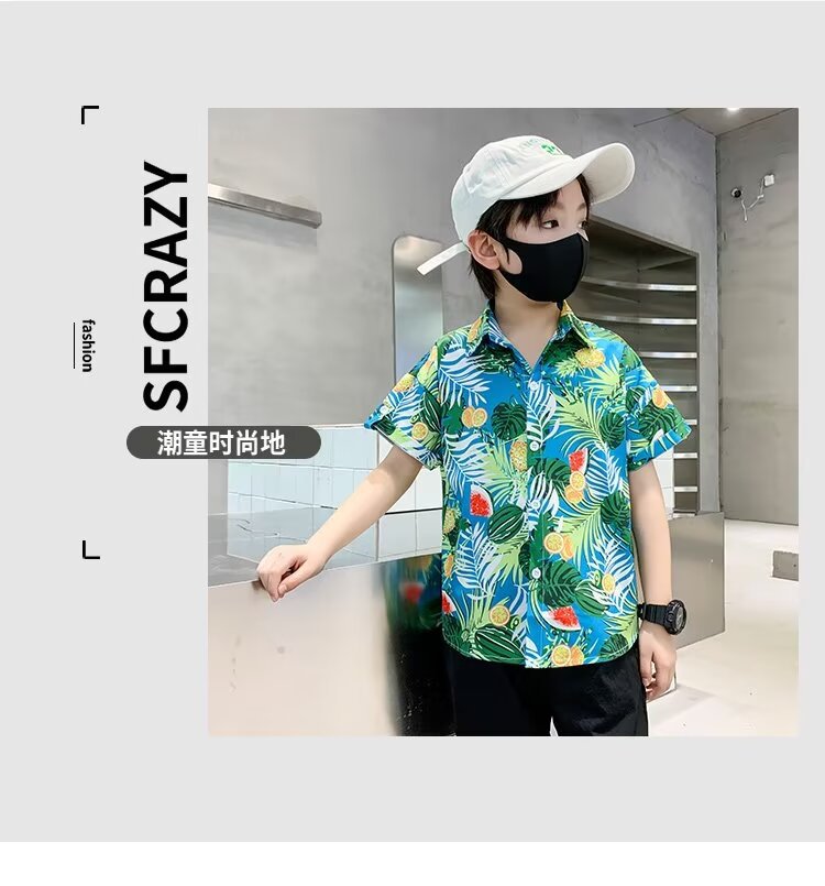Children's clothing, boys' short-sleeved shirts, children's spring and summer floral shirts, 2023 new style baby summer clothing, fashionable tops