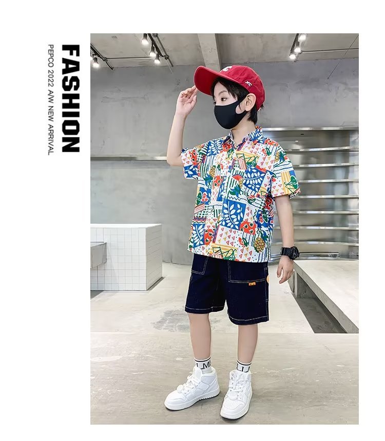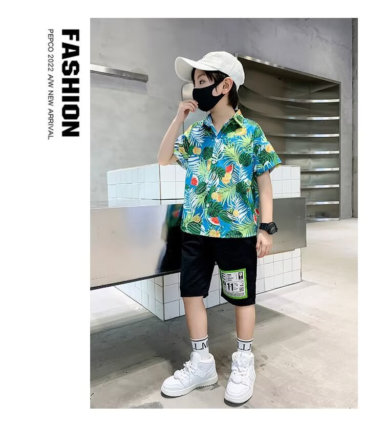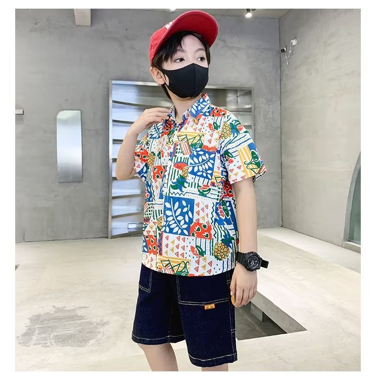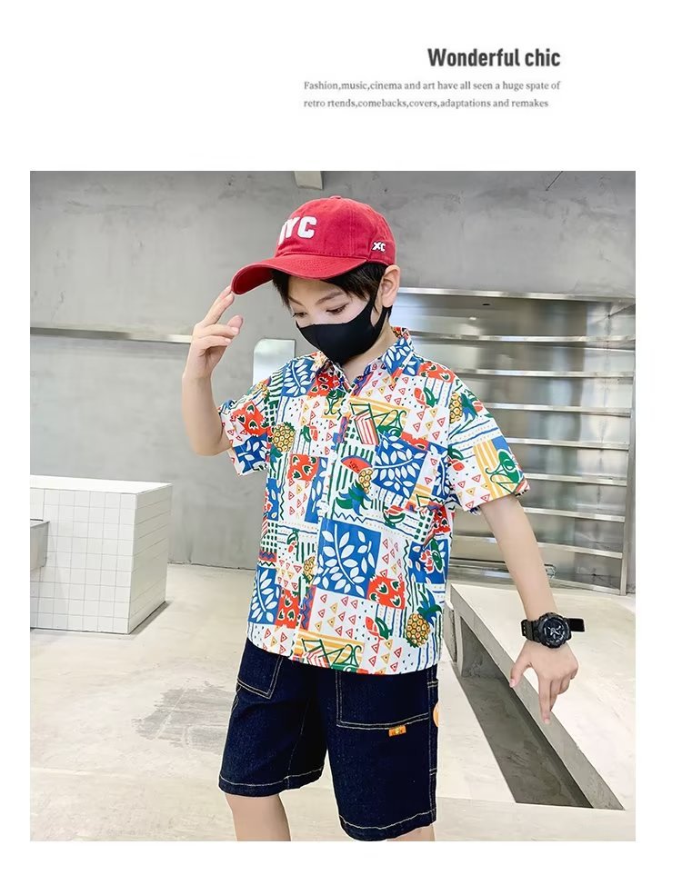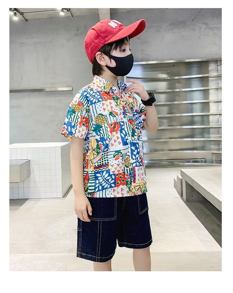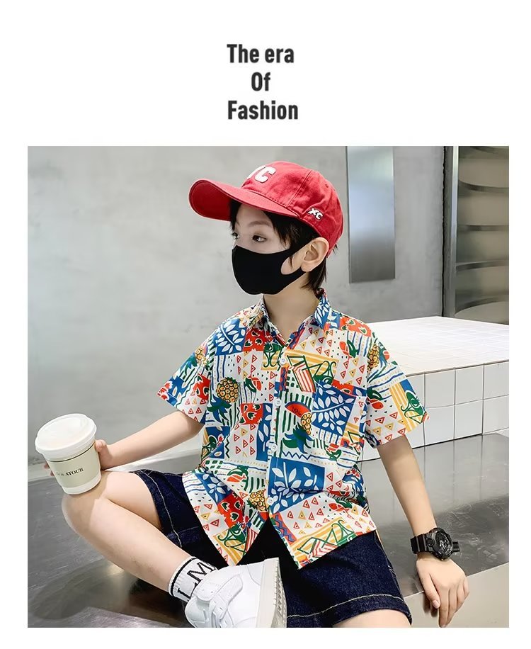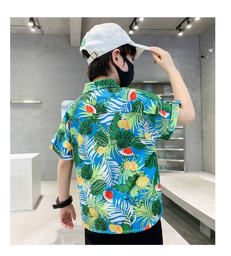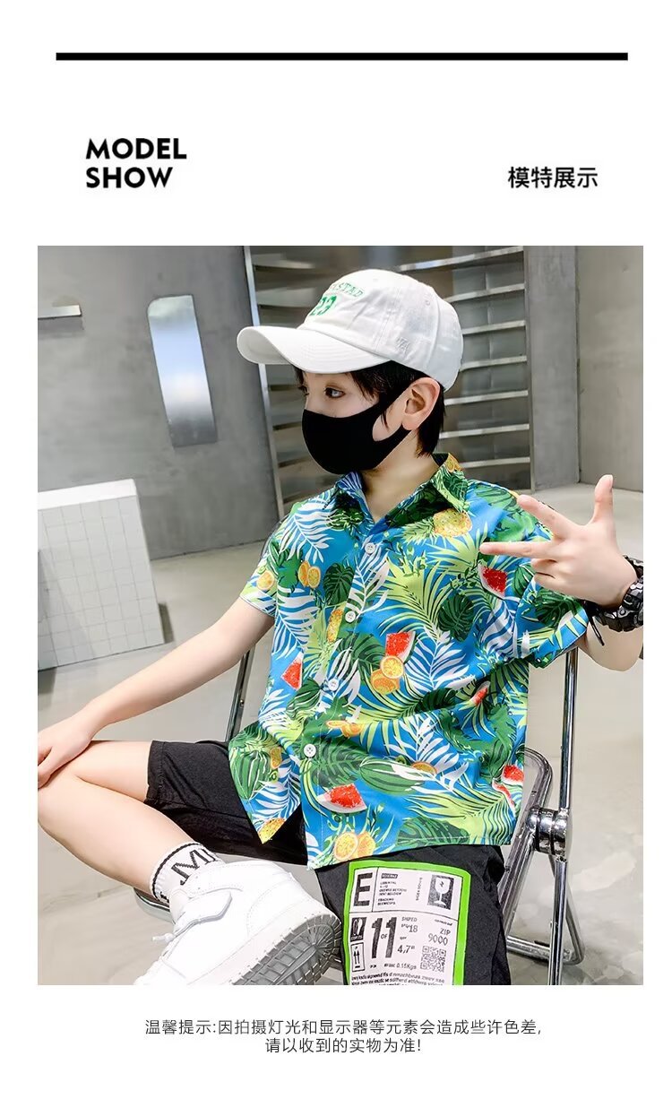 Children's clothing, boys' short-sleeved shirts, children's spring and summer floral shirts, 2023 new style baby summer clothing, fashionable tops