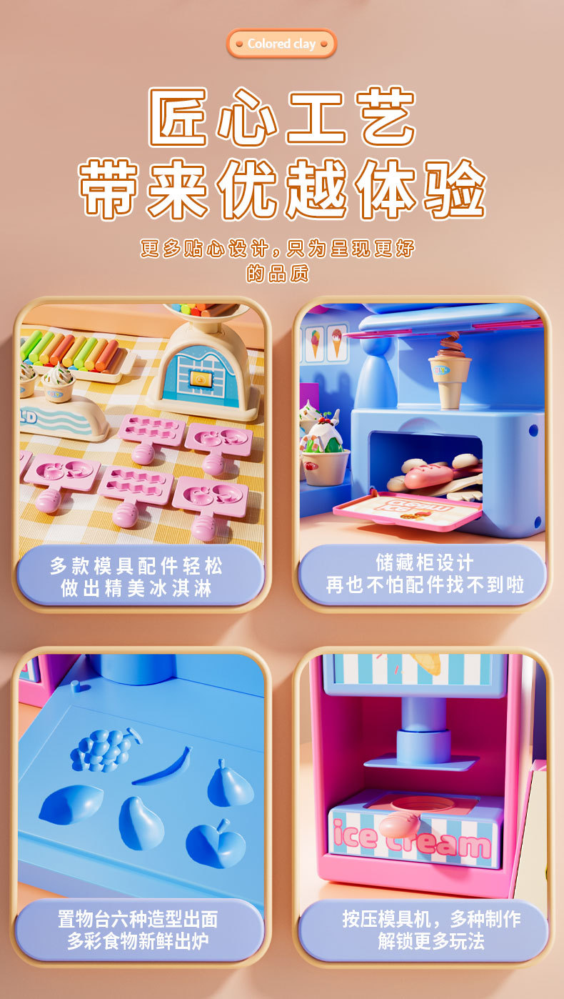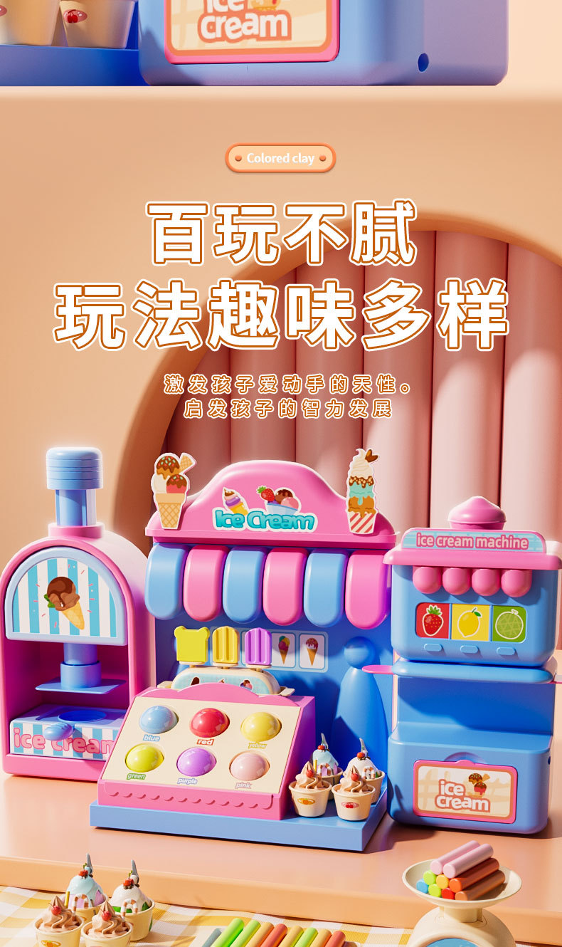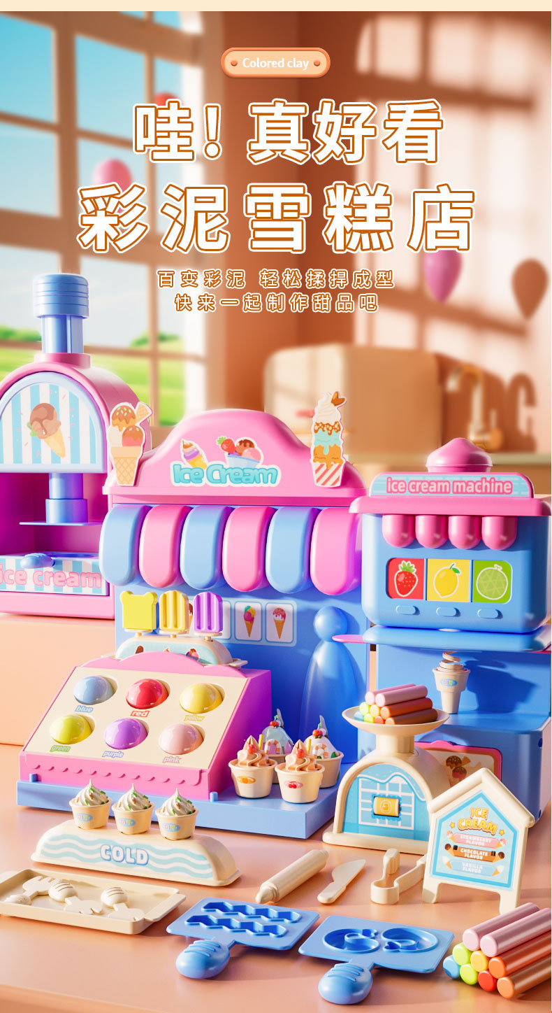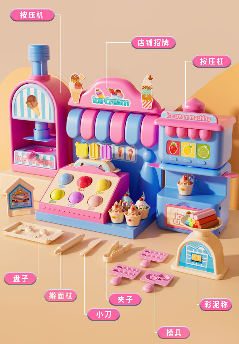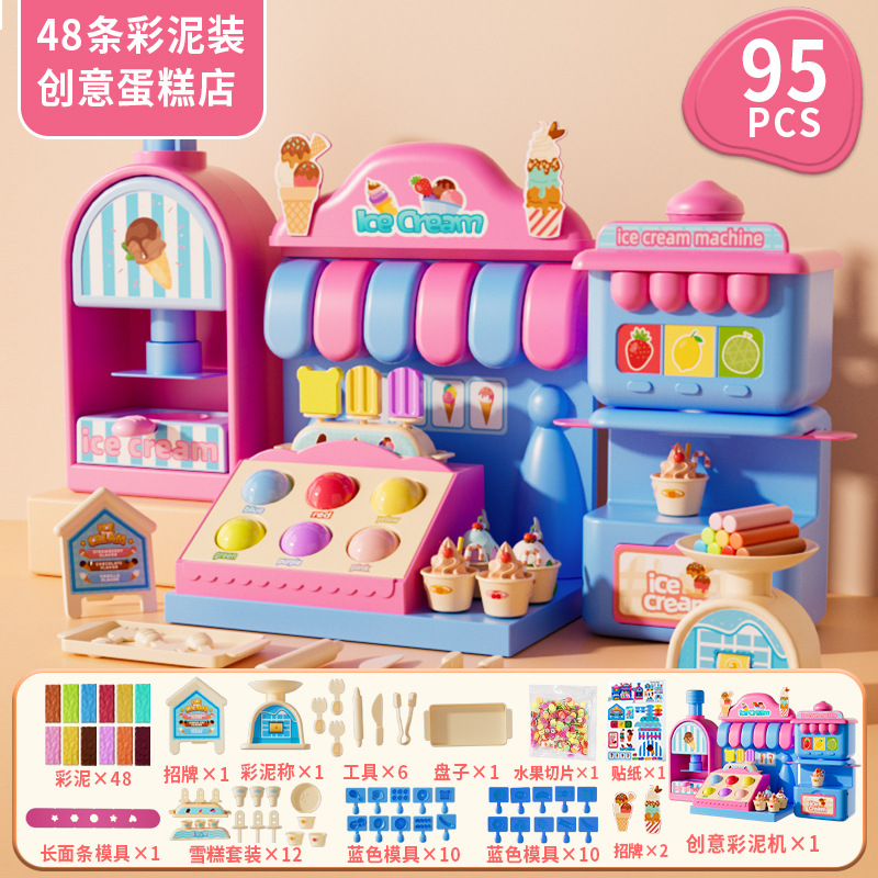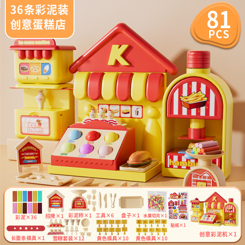 Children's colored clay ice cream shop, DIY ice cream house, pretend play, hamburger shop, educational handmade clay toy set, gift, fun educational toys
