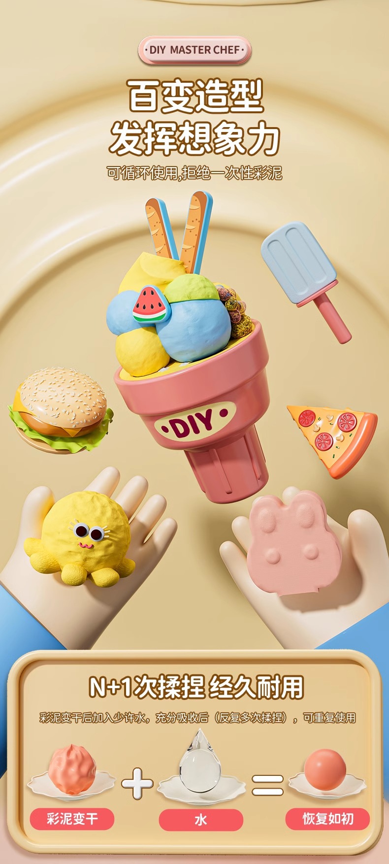 Children's colored clay ice cream shop, DIY ice cream house, pretend play, hamburger shop, educational handmade clay toy set, gift