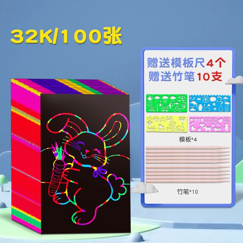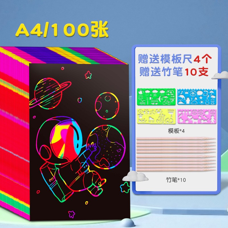 Children's colorful scratch paper a4 scratch paper, primary school students' black scratch wax paper, diy handmade creative doodle book art