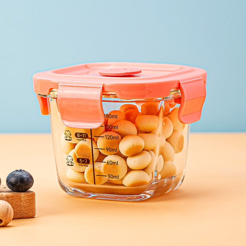 Children's complementary food box, baby complementary food bowl, storage box, fresh-keeping freezer, steamable, glass bowl, silicone lid, portable and sealed