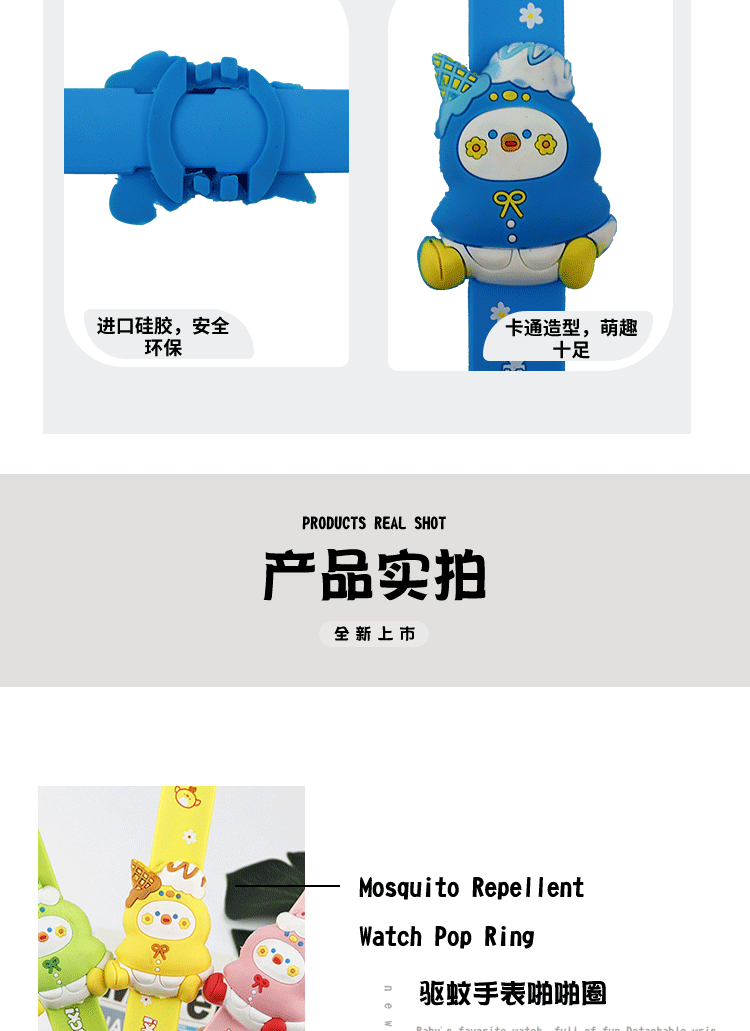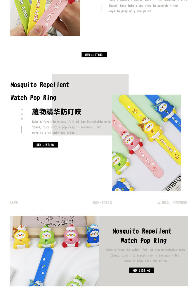 Children's creative cartoon cute duck silicone mosquito repellent wristband, plant essential oil insect repellent papa ring, irregular-shaped silicone products