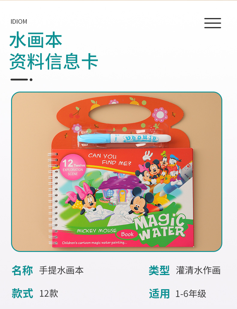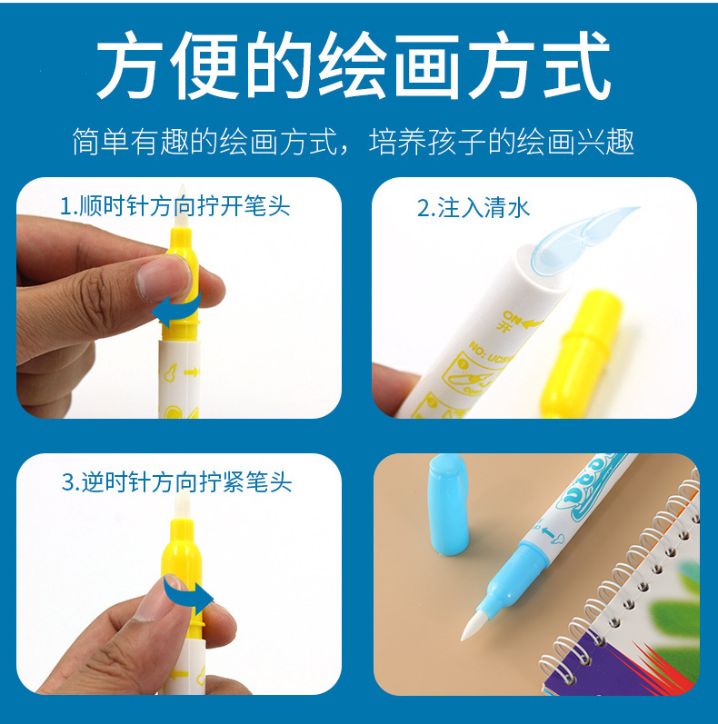 Product usage method. After drawing, wait until it dries. Repeatable painting. Just add water to the pen to draw. It can also be used.