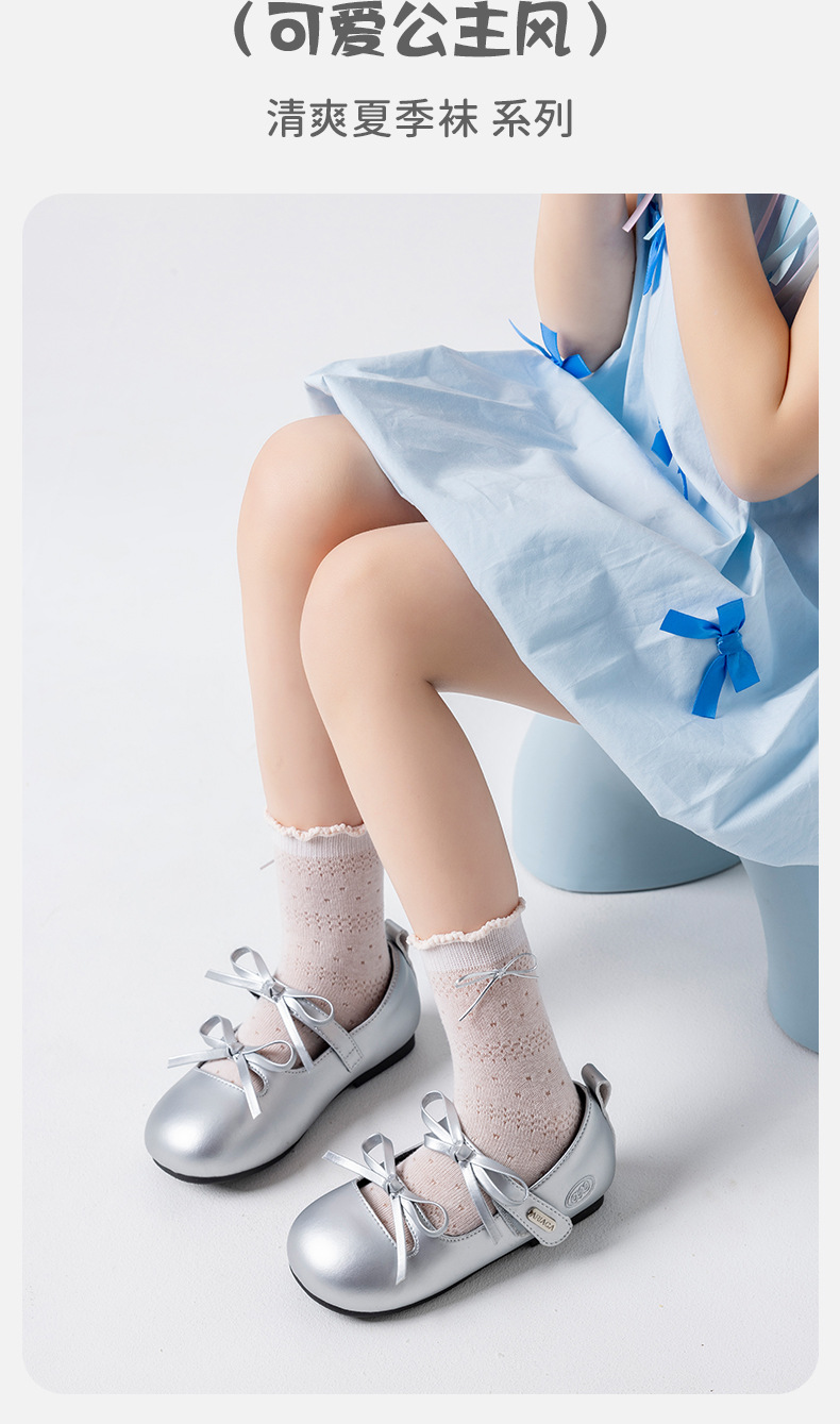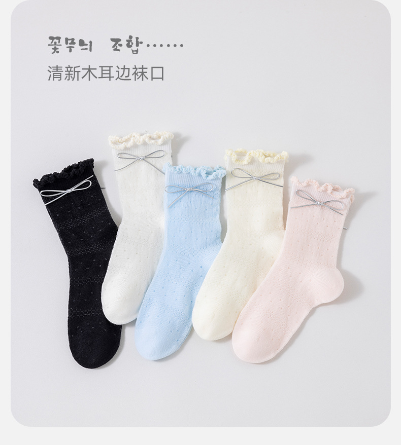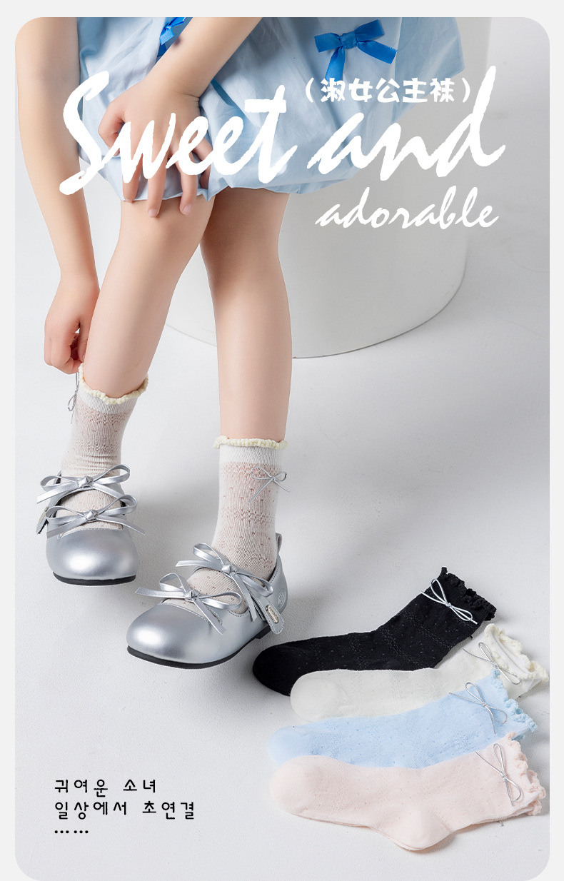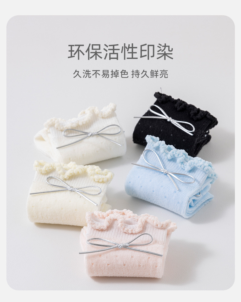 Children's cute mid-calf socks spring new collection solid color bow princess socks Girls black ear-trimmed bow socks