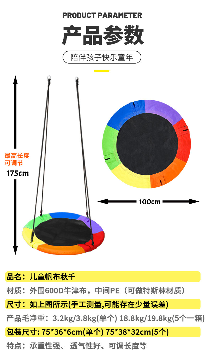 Children's denim swing, indoor and outdoor circular bird's nest swing, bird's nest swing, canvas children's hammock