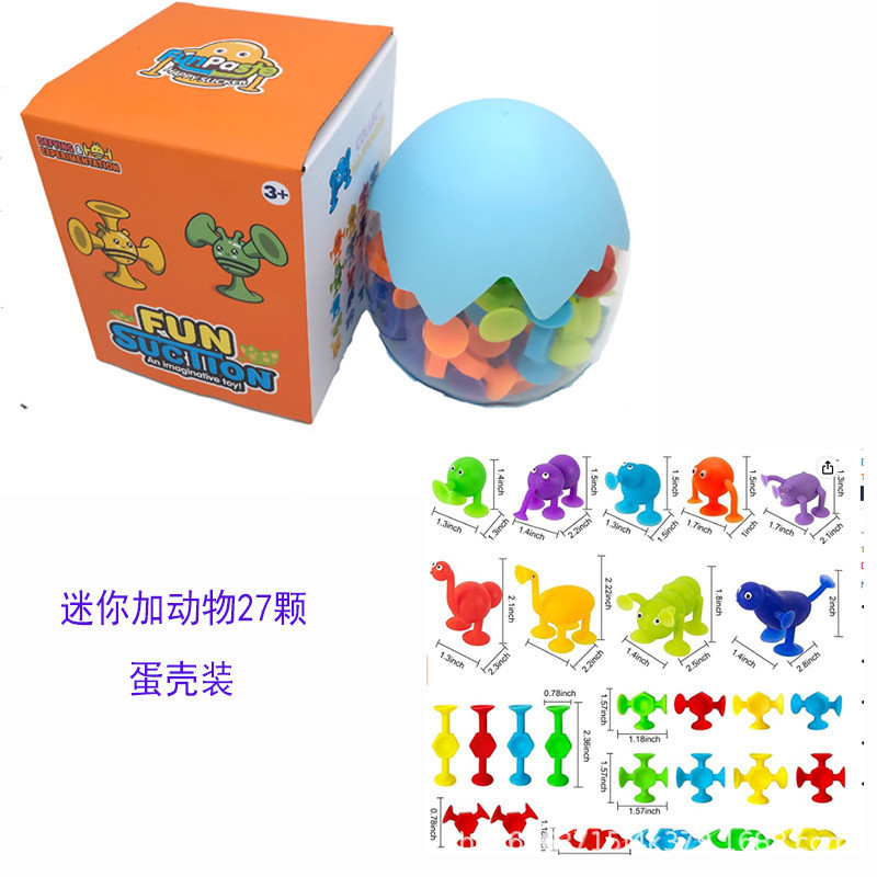 Children's DIY early education assembly suction cups, soft silicone building block toys, eggshell storage packaging, suction fun animal models