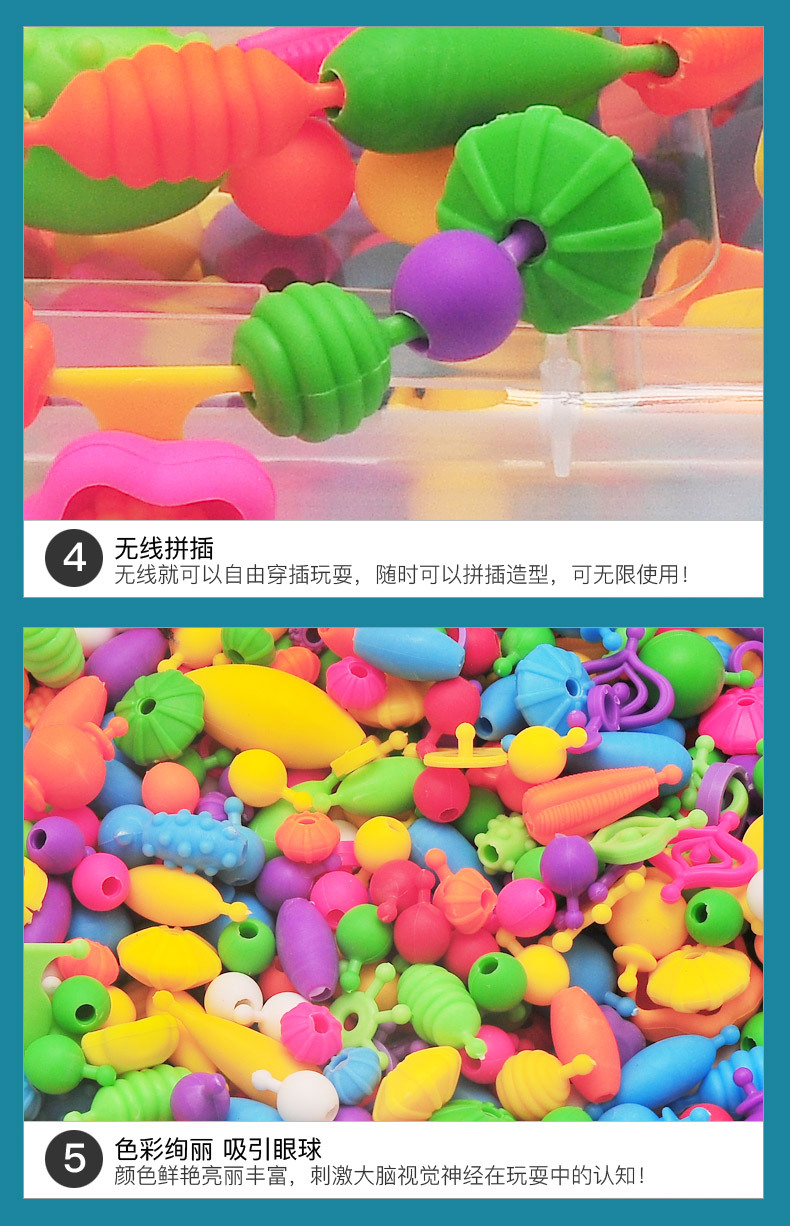 Children's diy handcrafted beaded educational toys, versatile cordless pop beaded necklace bracelet, girl beaded material package