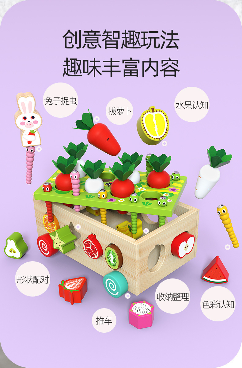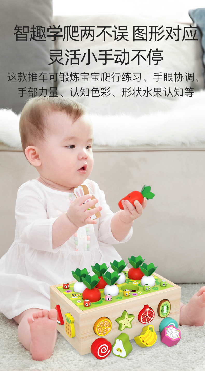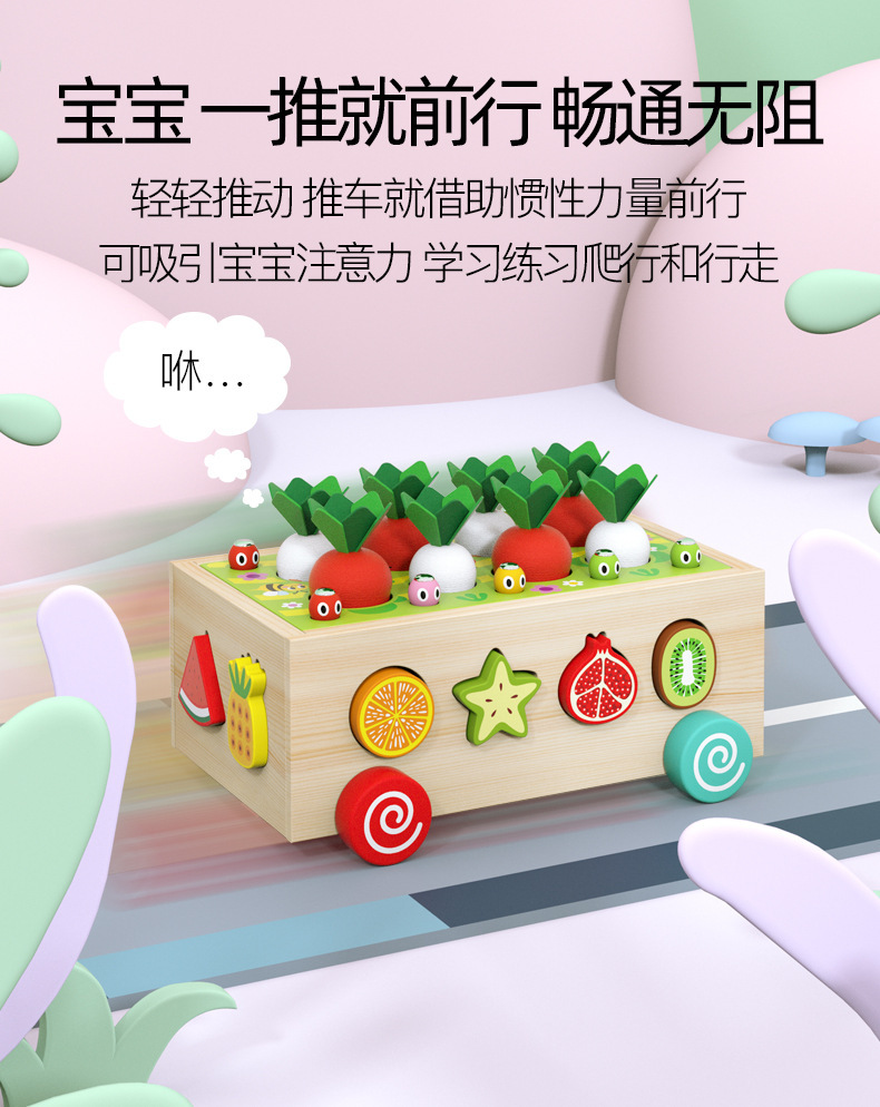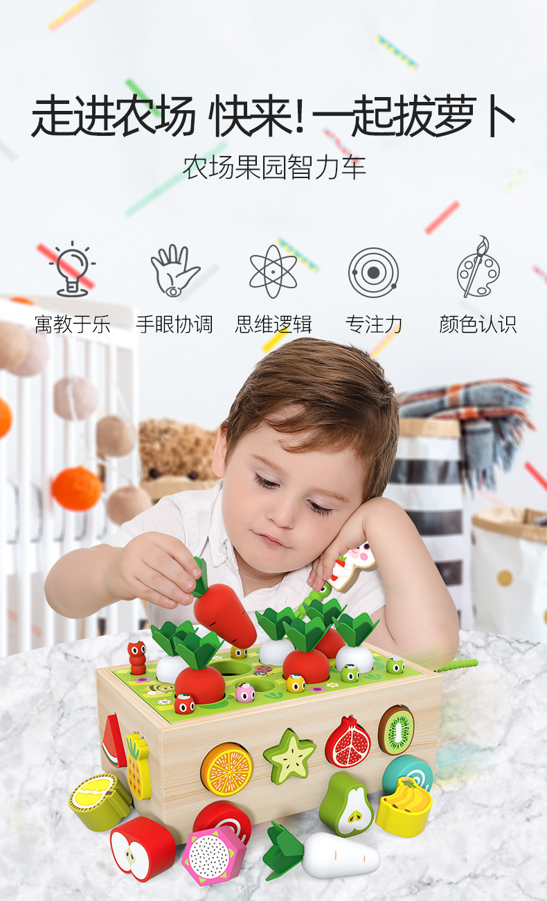 Children's drag farm orchard intelligence car, infant and baby early education shape matching building block multi-functional toy car