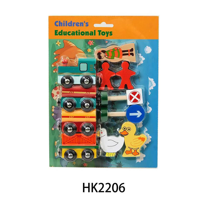 Children's educational and educational solid wood magnetic train, wooden traffic signboards, road identification signs, and simulated cars