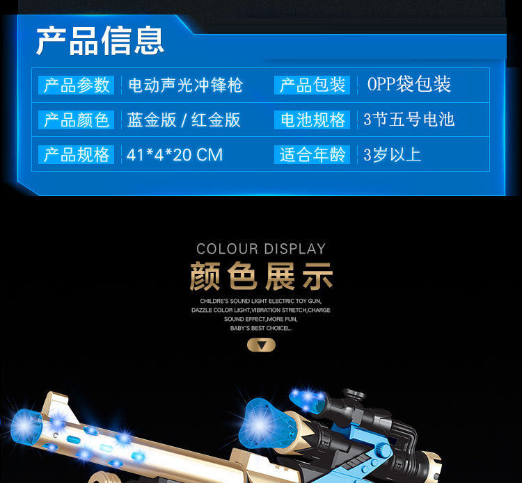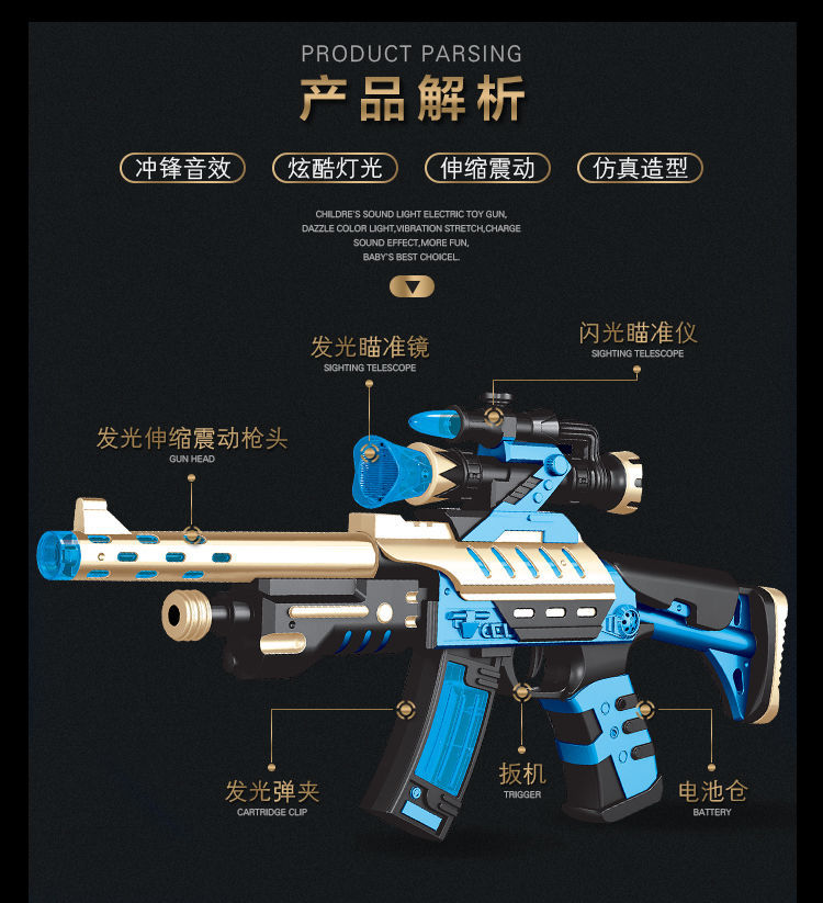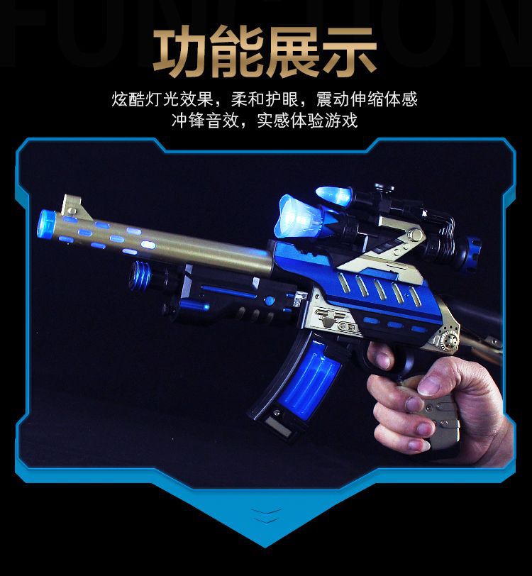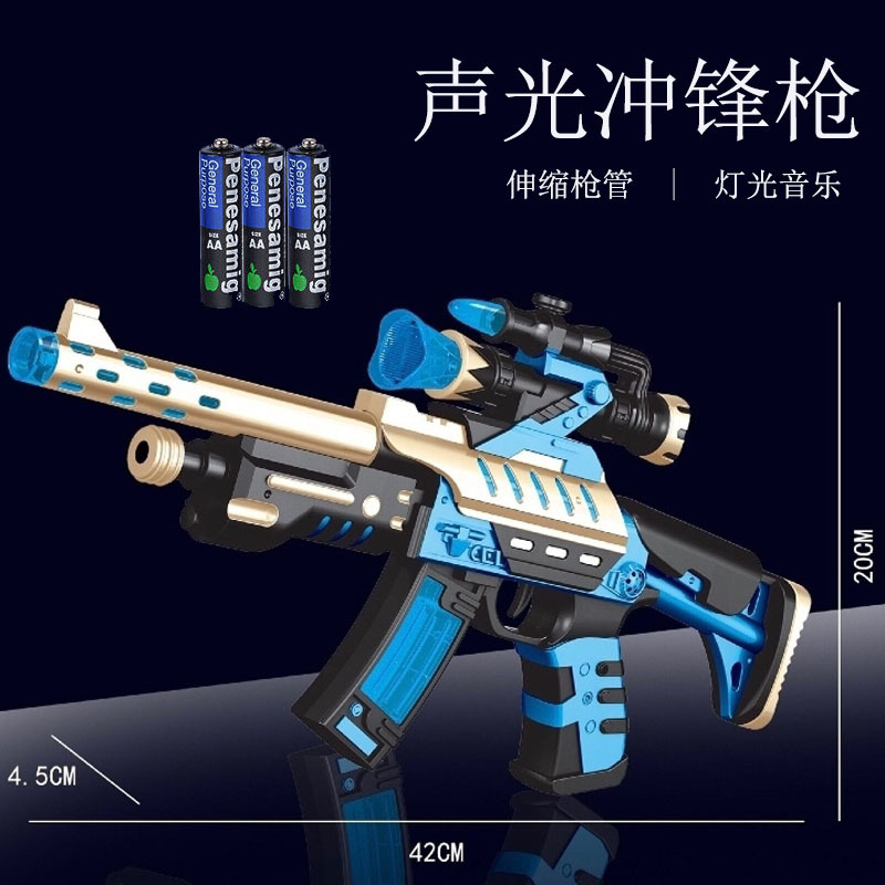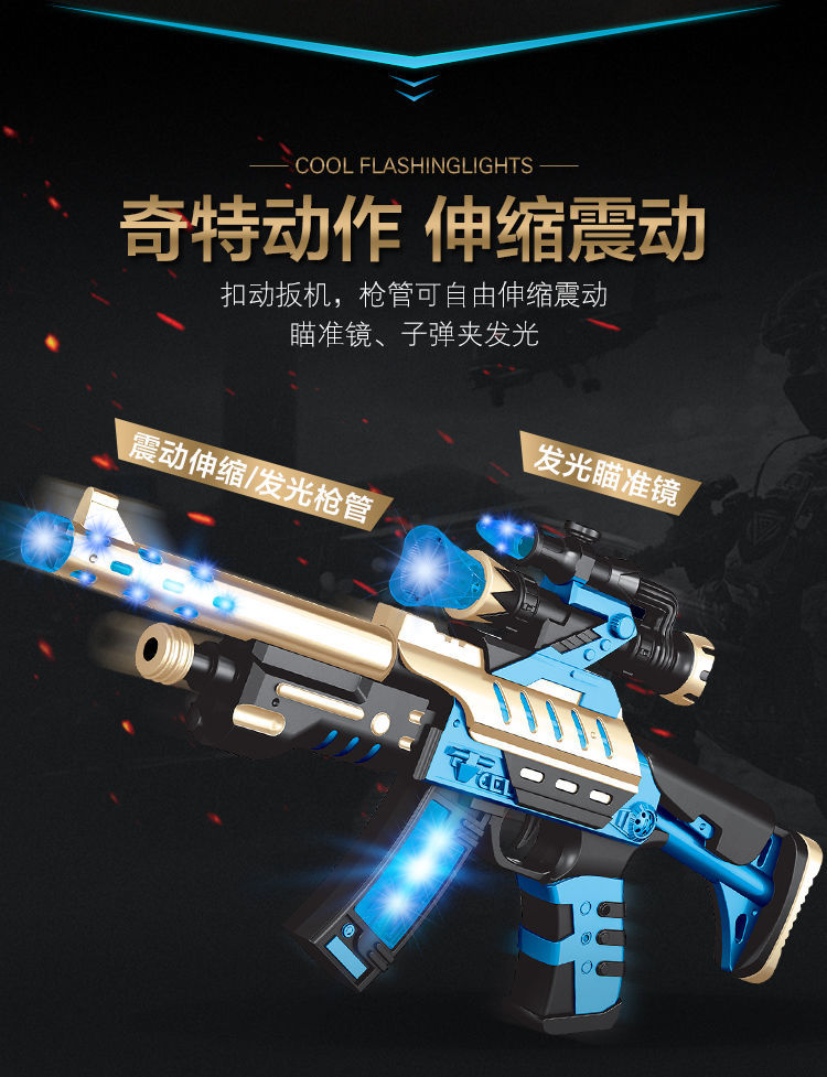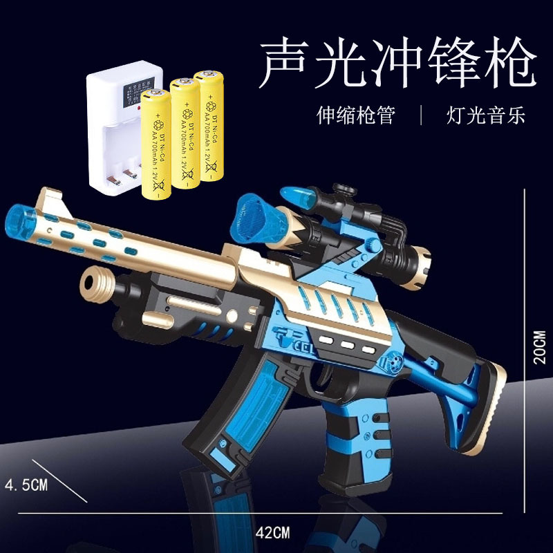 Children's electric eight-tone gun, telescopic vibrating toy, boy's light and music submachine gun