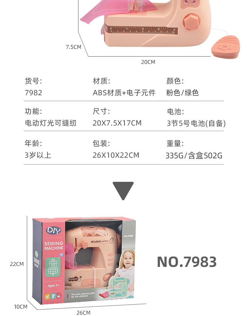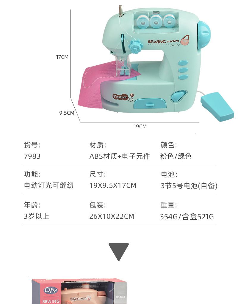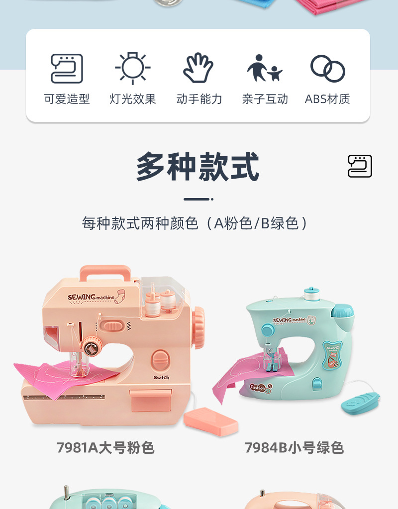 | 7983A/B Medium-sized Electric Light Sewing Machine (Pink/Green) | 48PCS | 87 * 54.5 * 69 cm | 28/25KG |