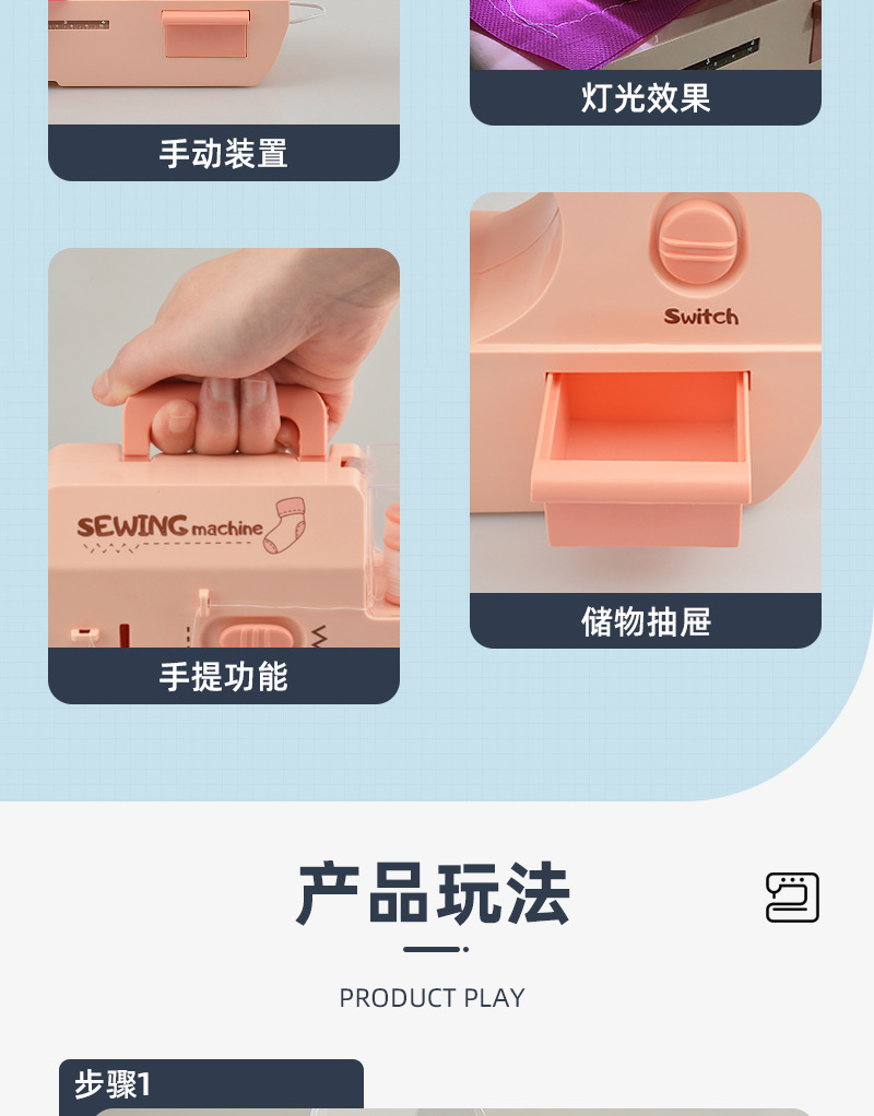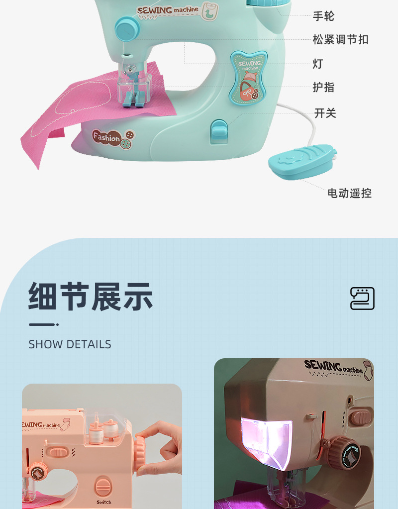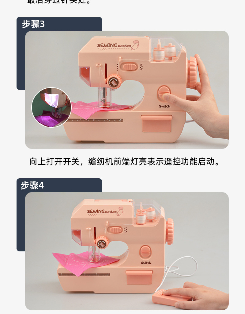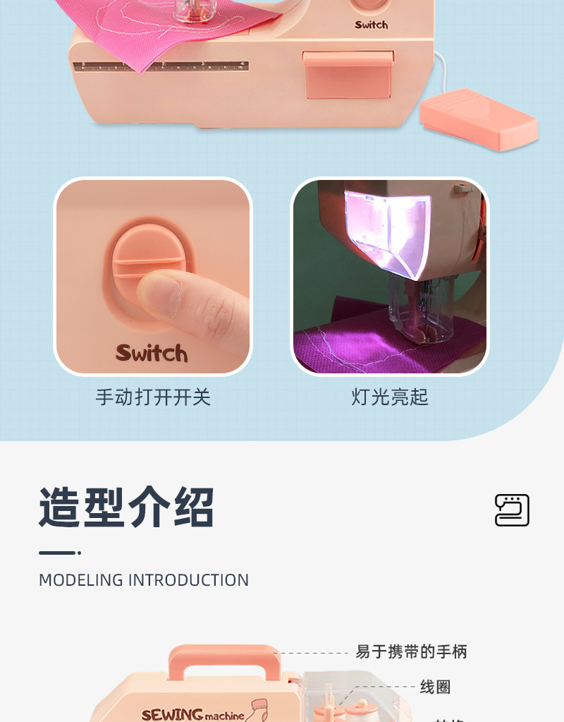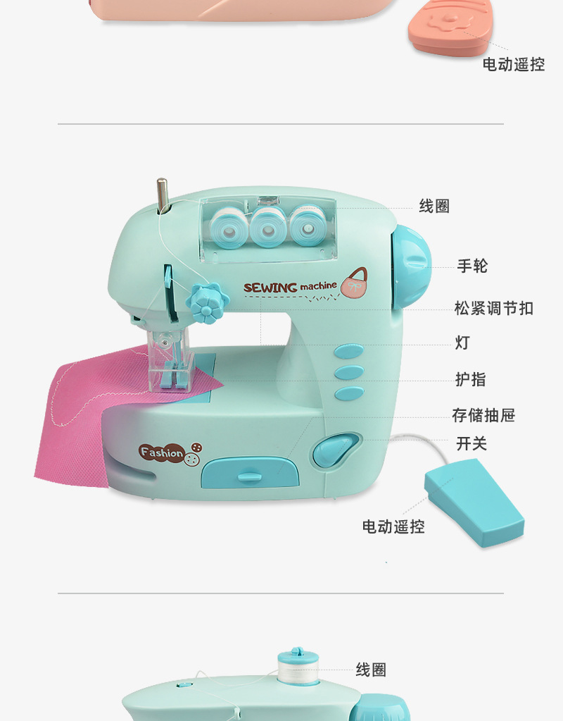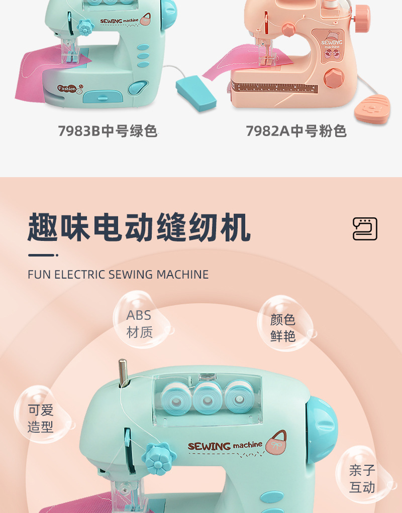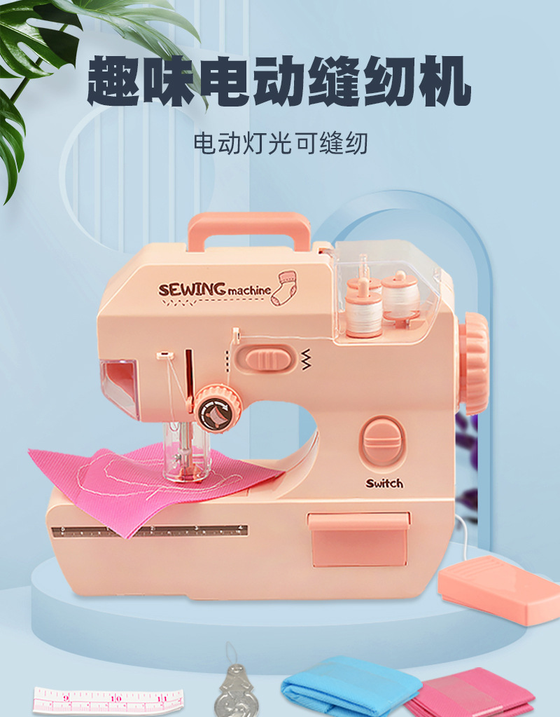 Children's electric light sewing machine, mini simulation tailor machine, small household appliance set, girls' house play interactive toys
