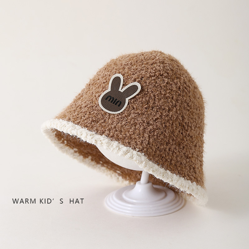 Children's fisherman hats, thickened for autumn and winter, warm plush basin hats for babies, Korean and Japanese style bucket hats for boys and girls